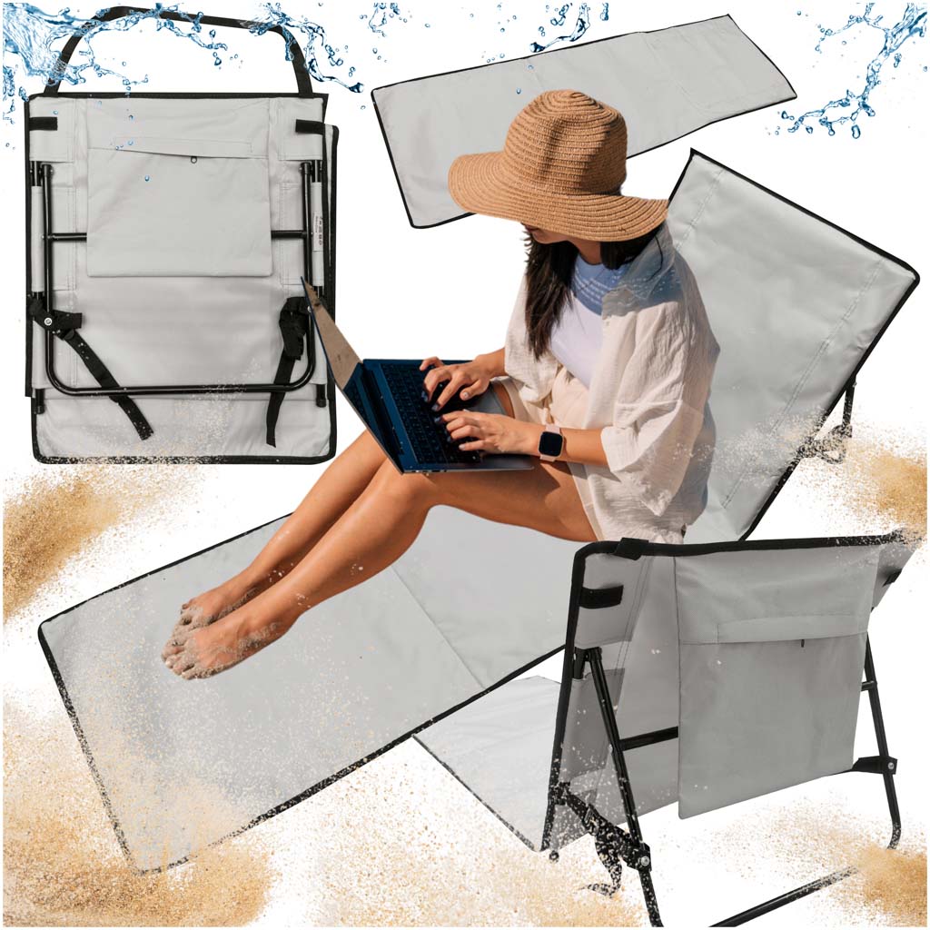 Sezlong de plaja pliabil, spatar cu cadru metalic, reglabil, 150x47 cm, gri Household NewTrend