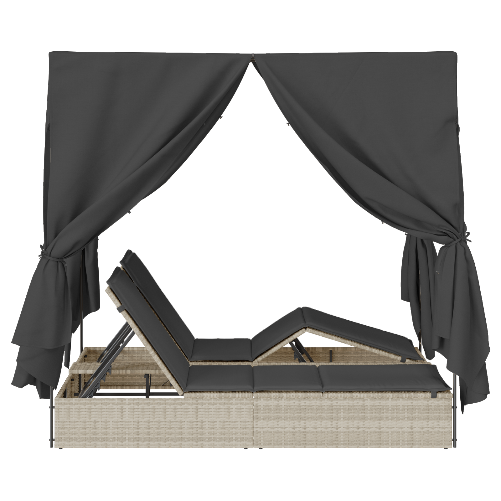 Șezlong Dublu cu Acoperiș și Cortine Gri Deschis Poliratan GartenMobel Dekor