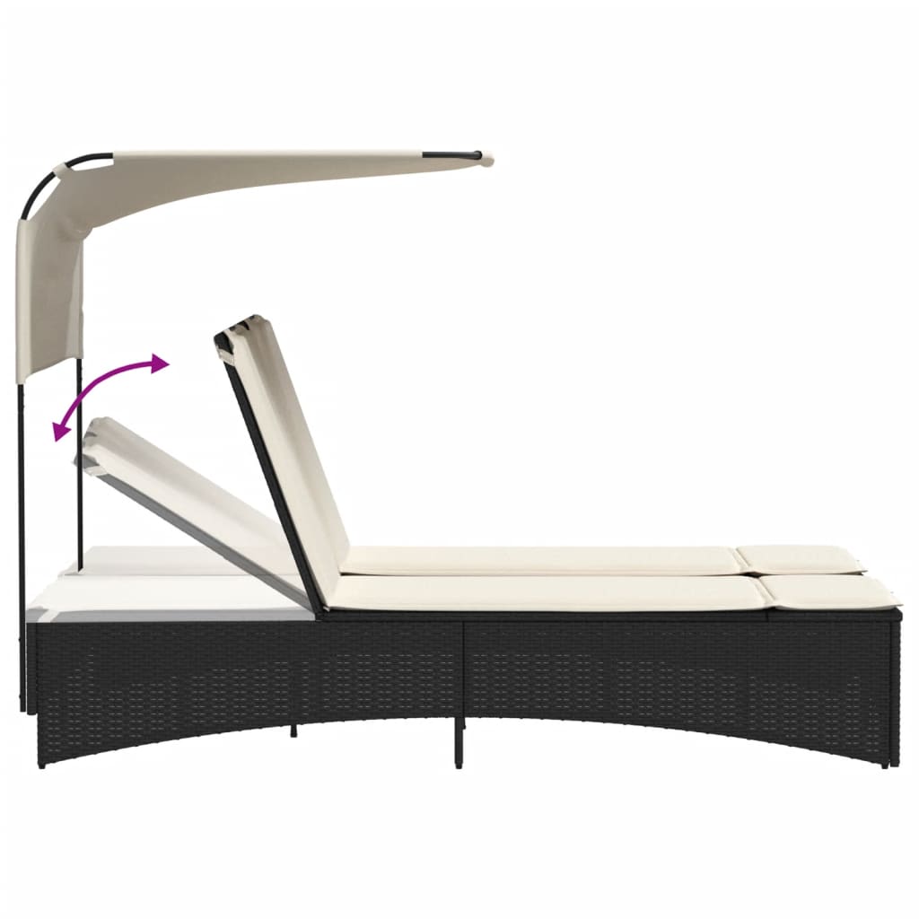 Șezlong dublu cu baldachin și perne, negru, poliratan GartenMobel Dekor
