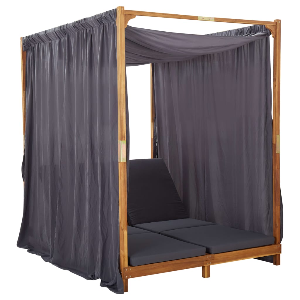 Șezlong dublu cu perdele și perne, lemn masiv de acacia GartenMobel Dekor