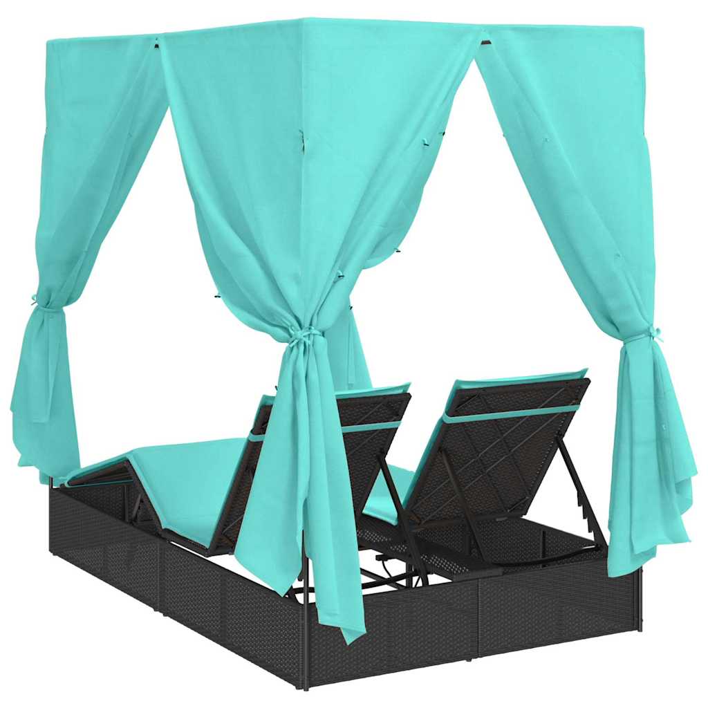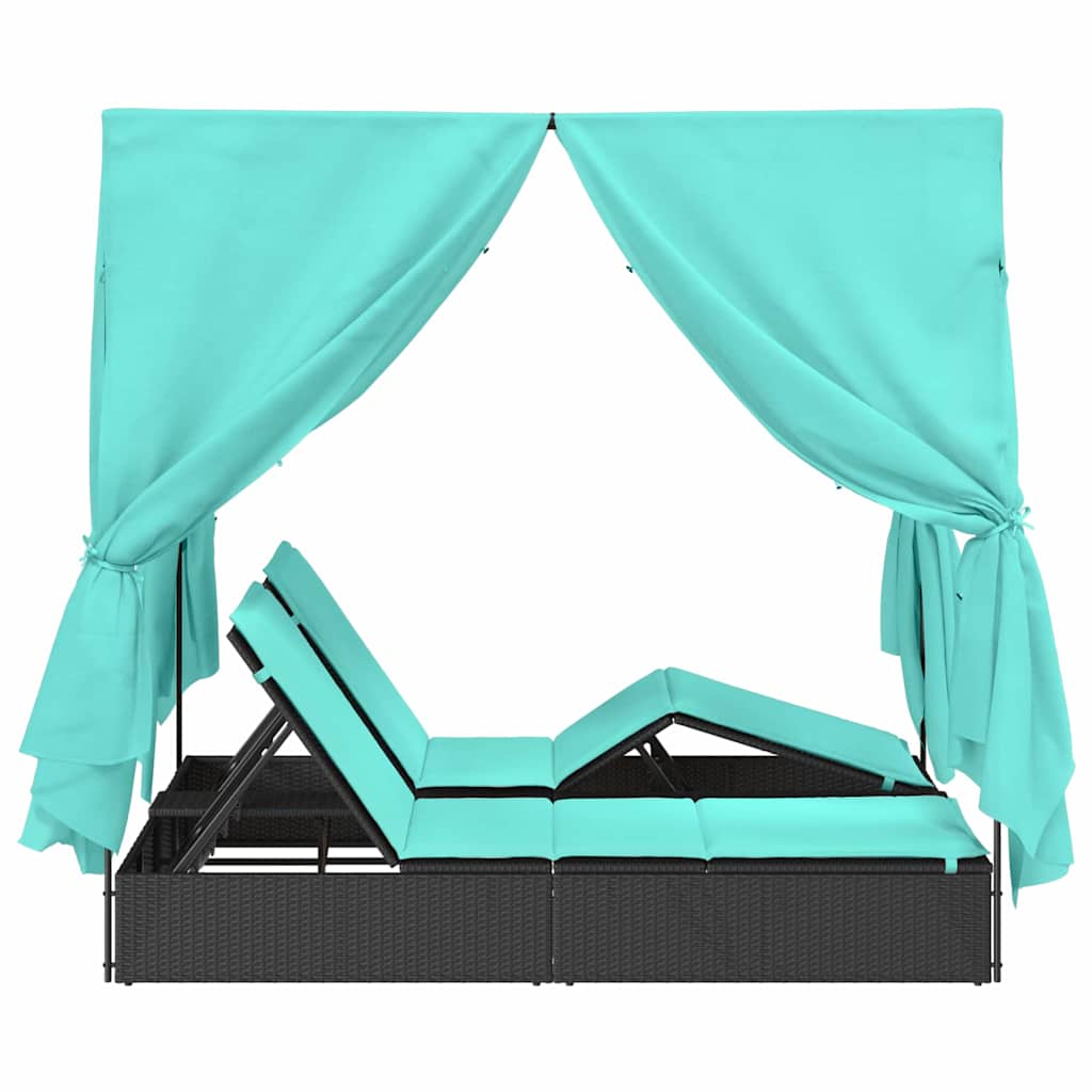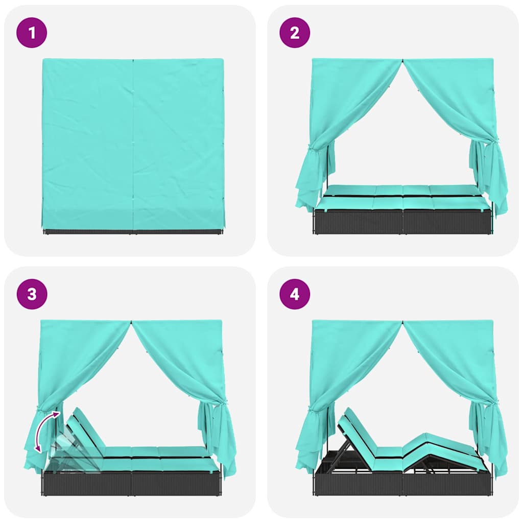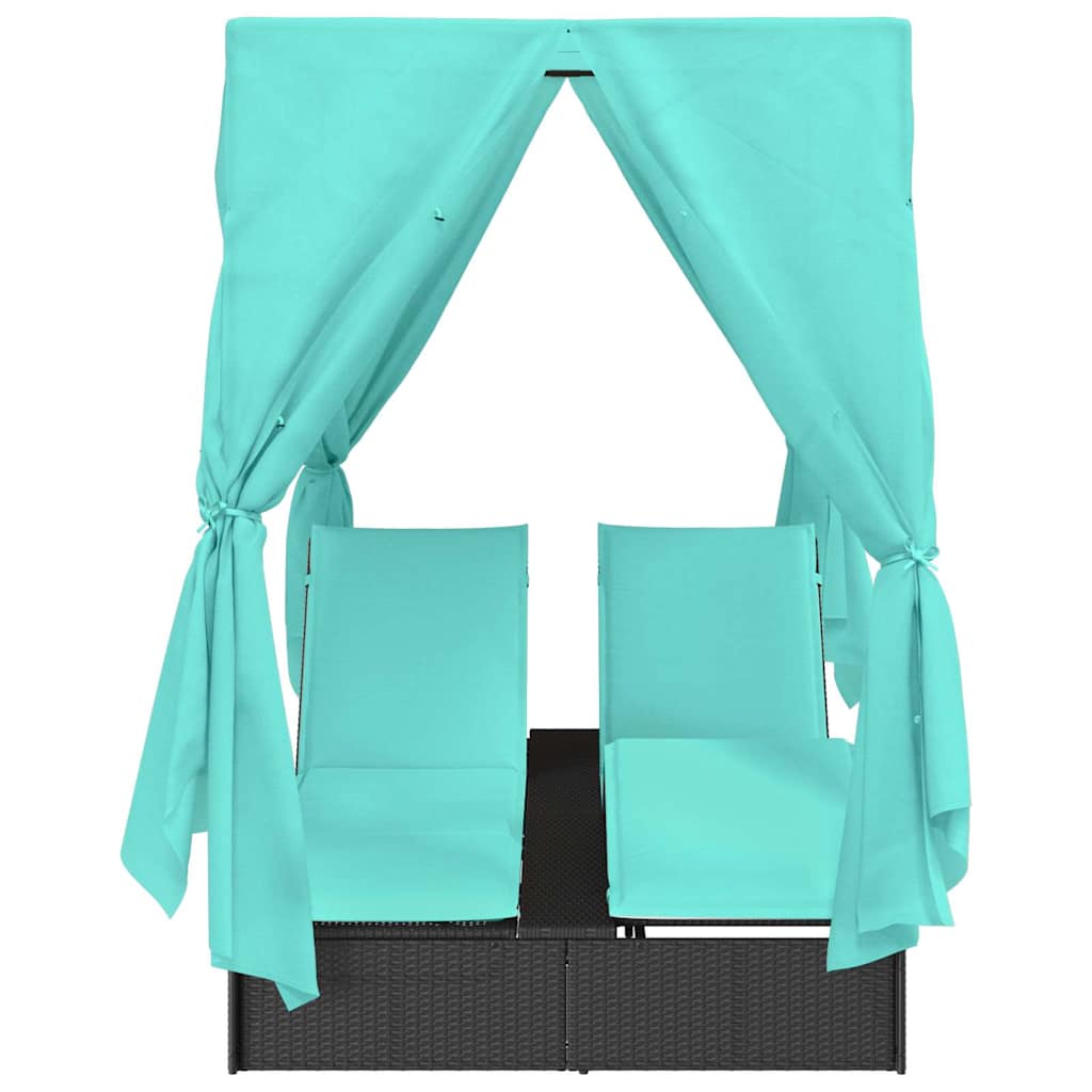 Șezlong dublu cu perdele Turcoaz 205 x 129 x 200 cm poliratan GartenMobel Dekor