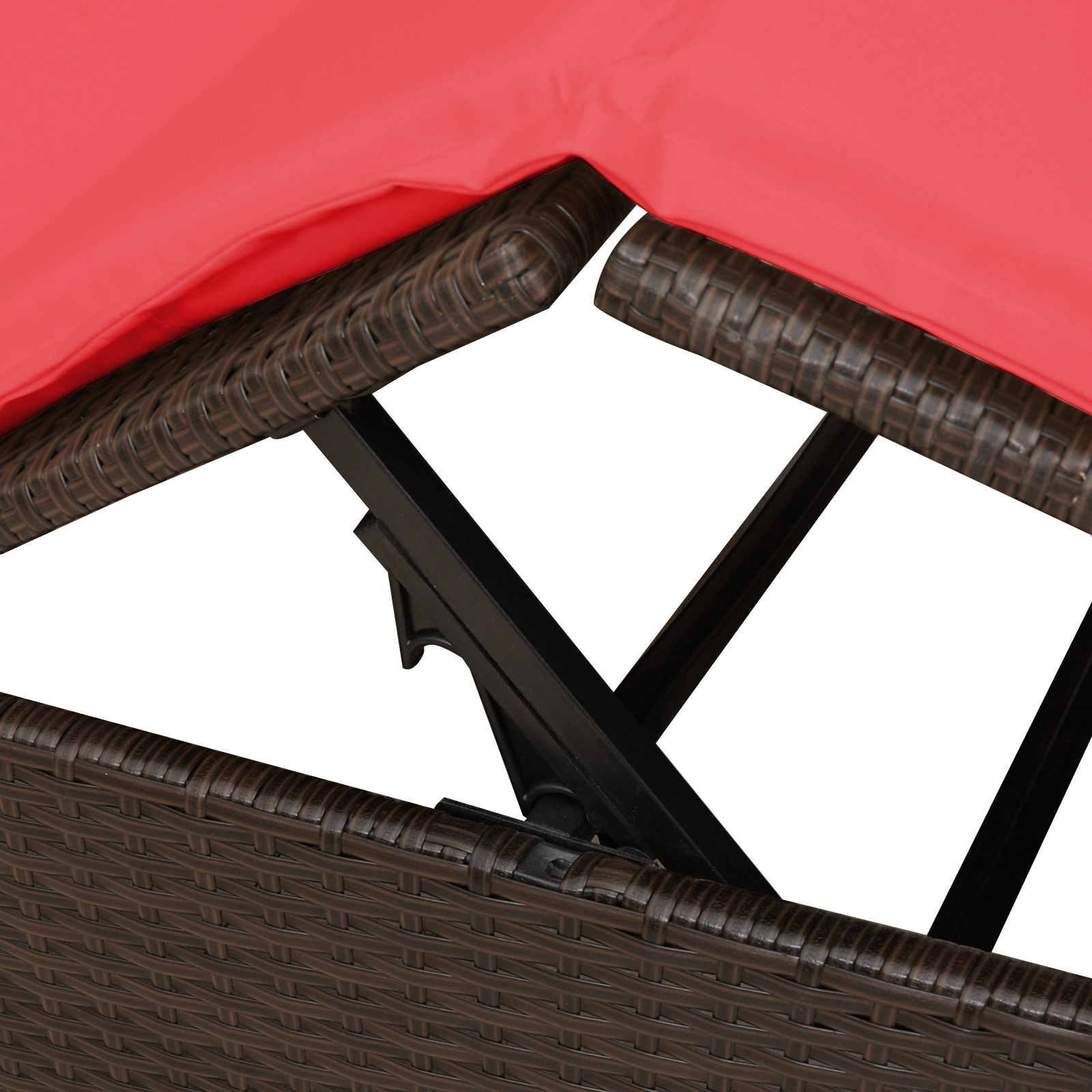 Șezlong dublu Set de 2 Maro și Roșu Ratan și Poliester Mare GartenMobel Dekor