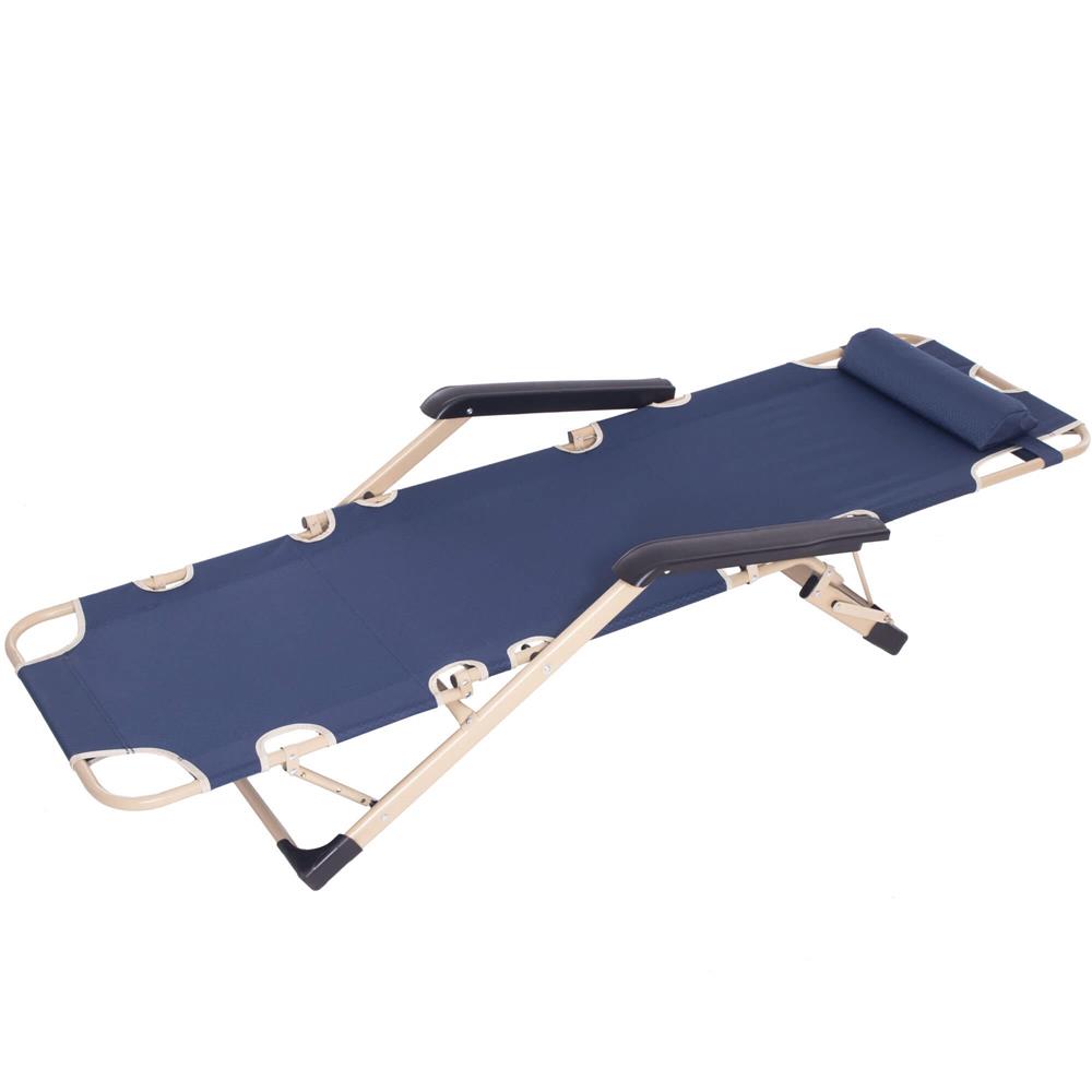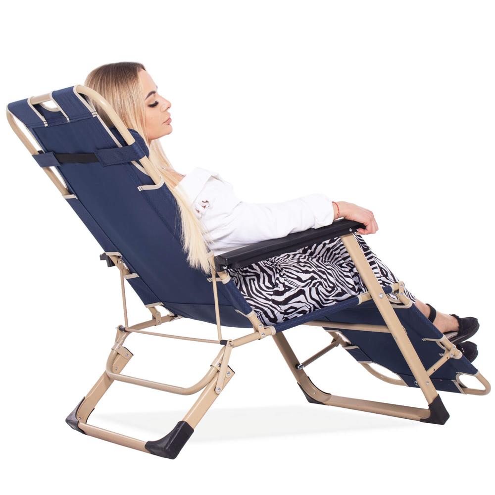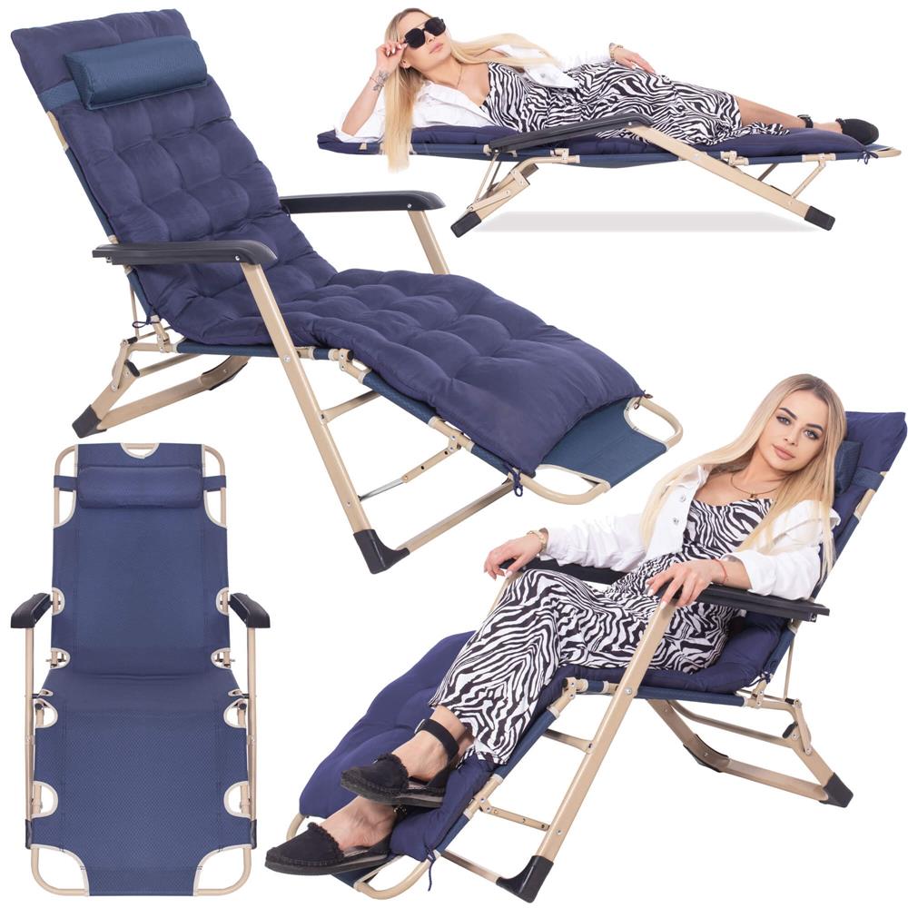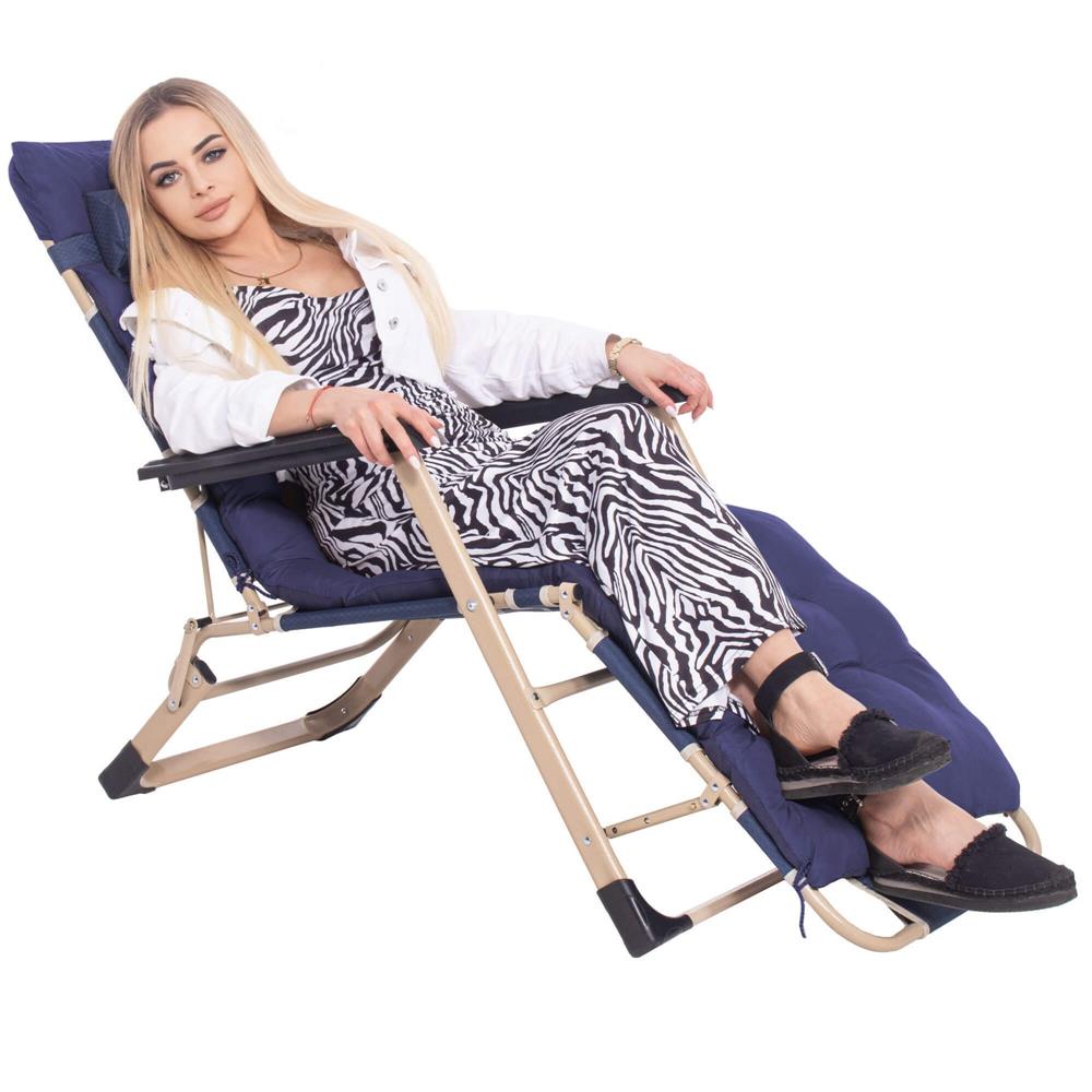 Șezlong metalic reglabil pentru grădină, cu pernă și tetieră, albastru