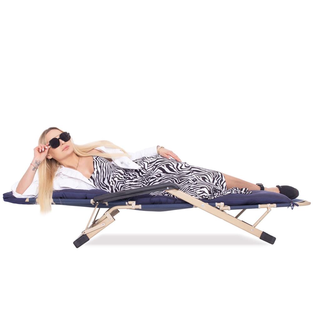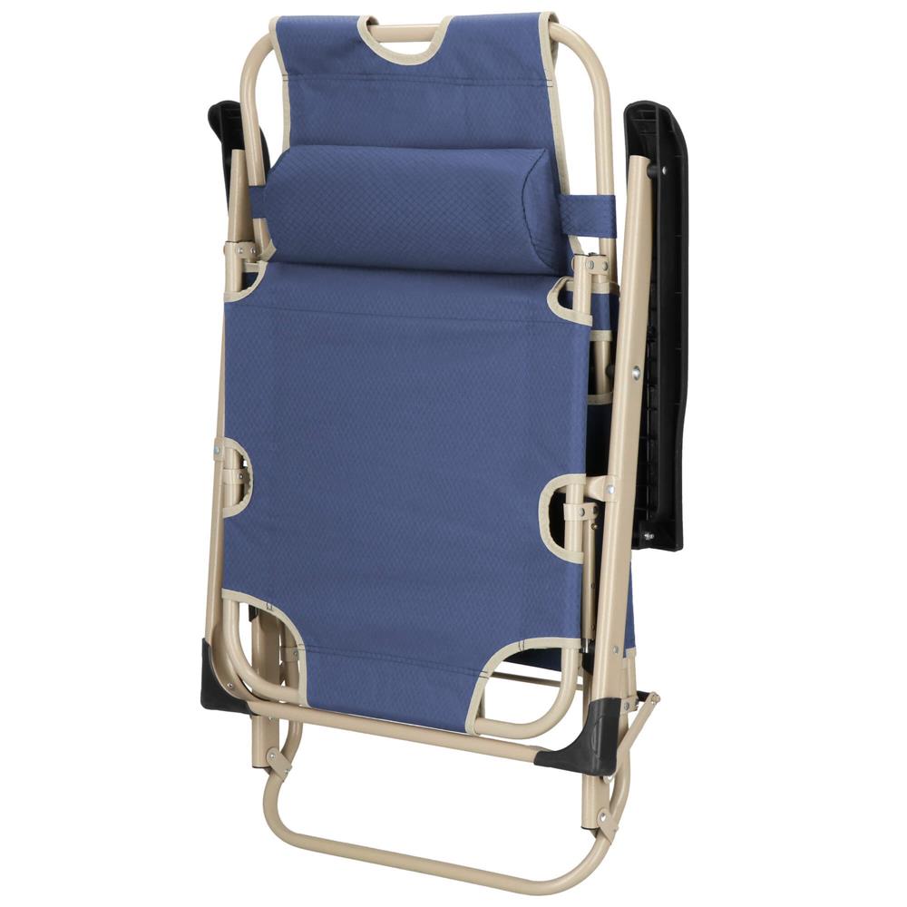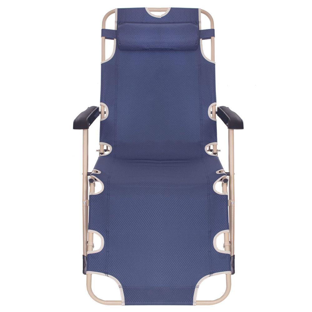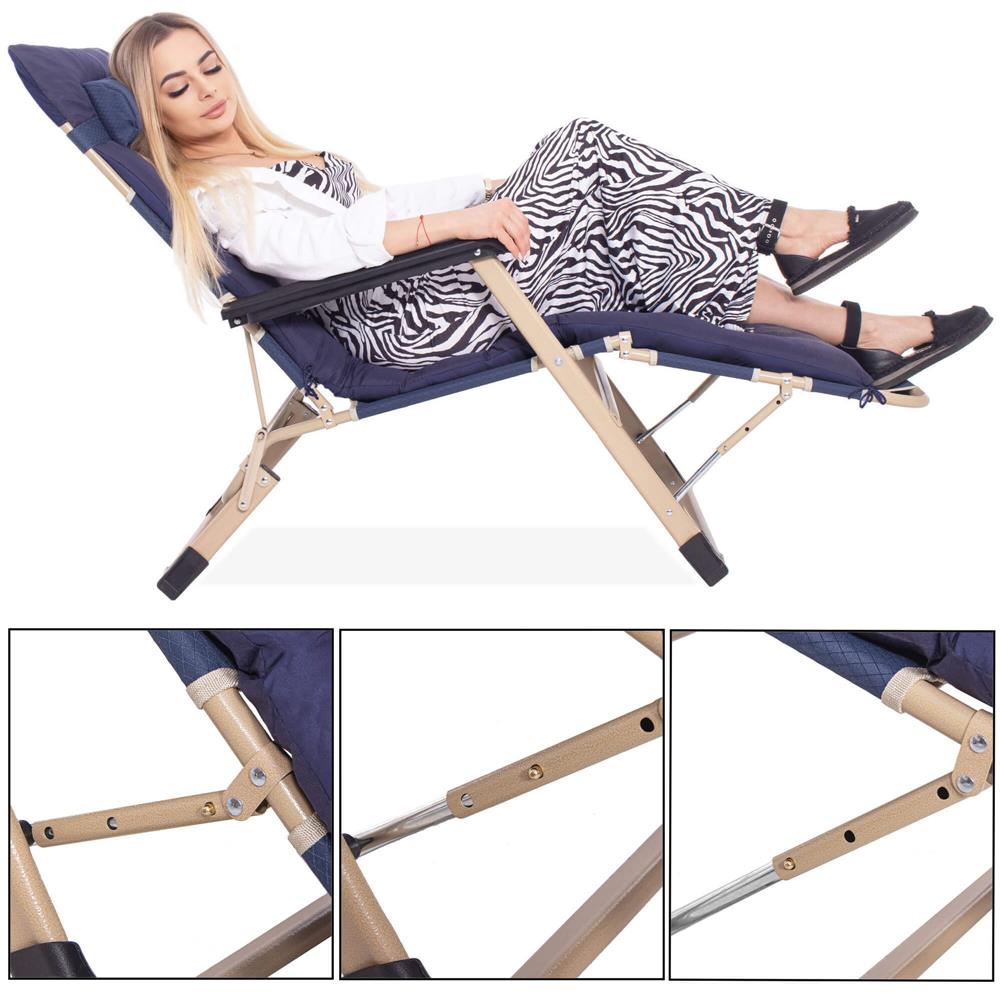 Șezlong metalic reglabil pentru grădină, cu pernă și tetieră, albastru