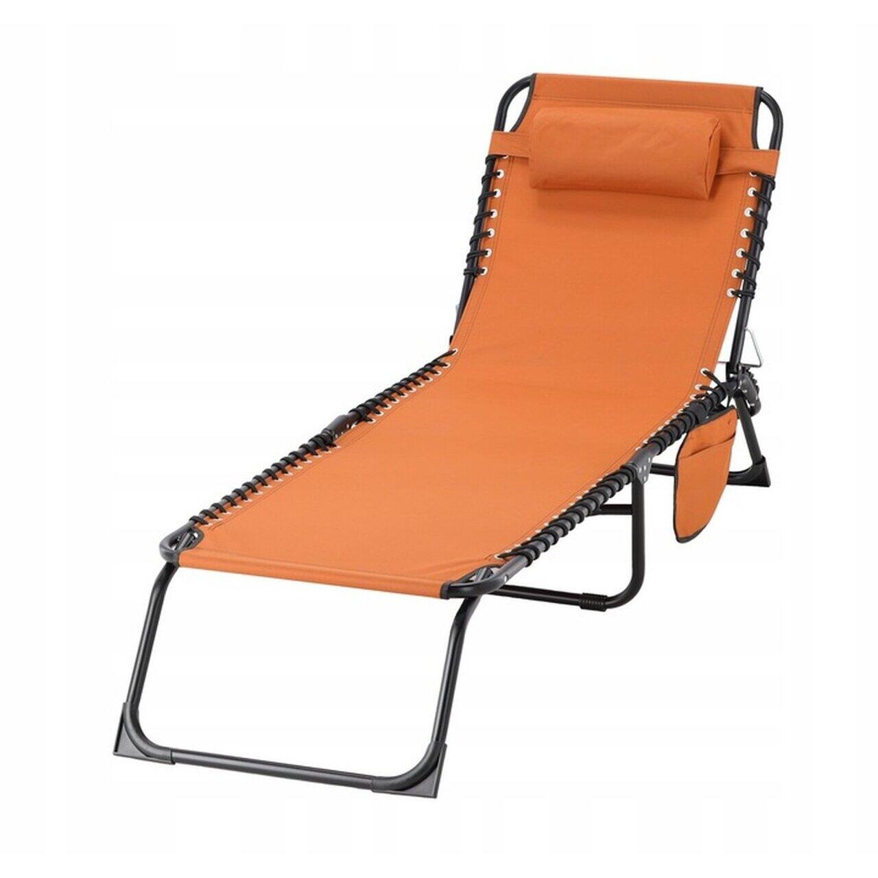 Sezlong pentru gradina, otel, reglabil, cu tetiera, buzunar lateral, portocaliu, 190x58x30 cm, Miami