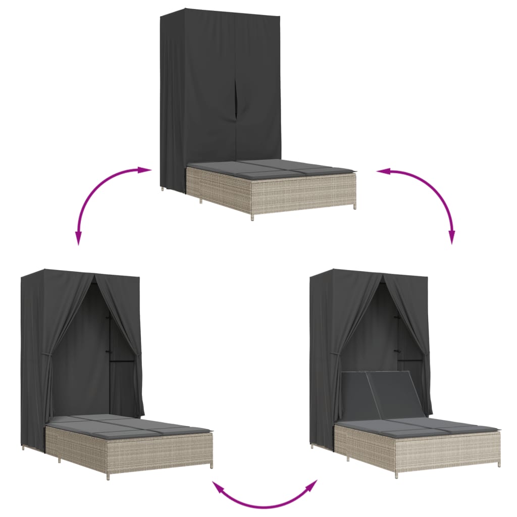 Șezlong plajă dublu cu acoperiș perdele, gri deschis, poliratan GartenMobel Dekor