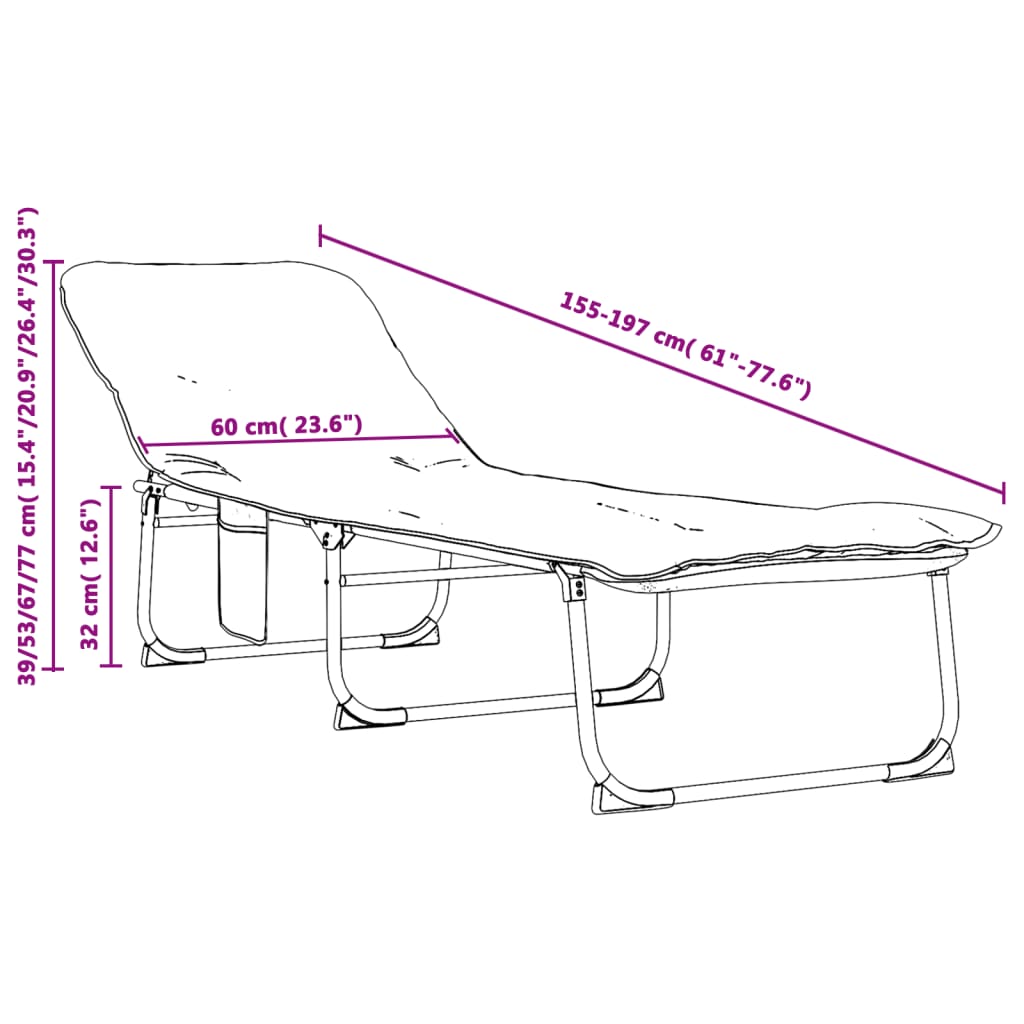 - Design pliabil: Șezlongul poate fi pliat într-o dimensiune compactă pentru depozitare și transport ușoare.