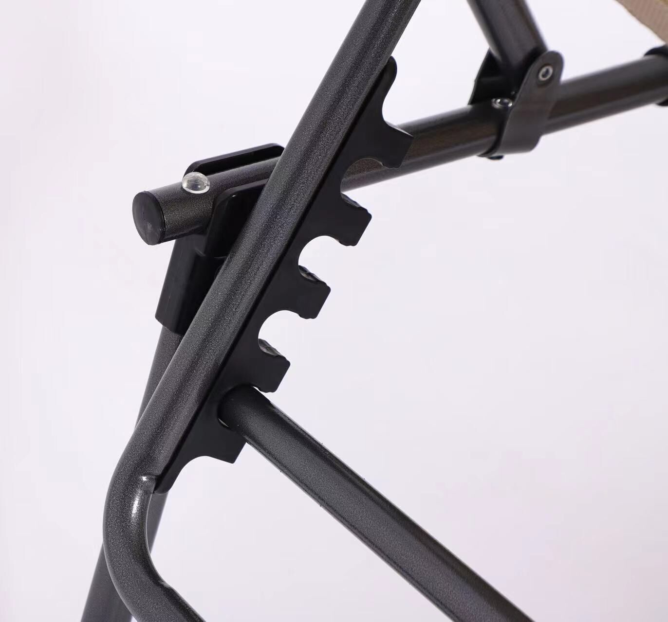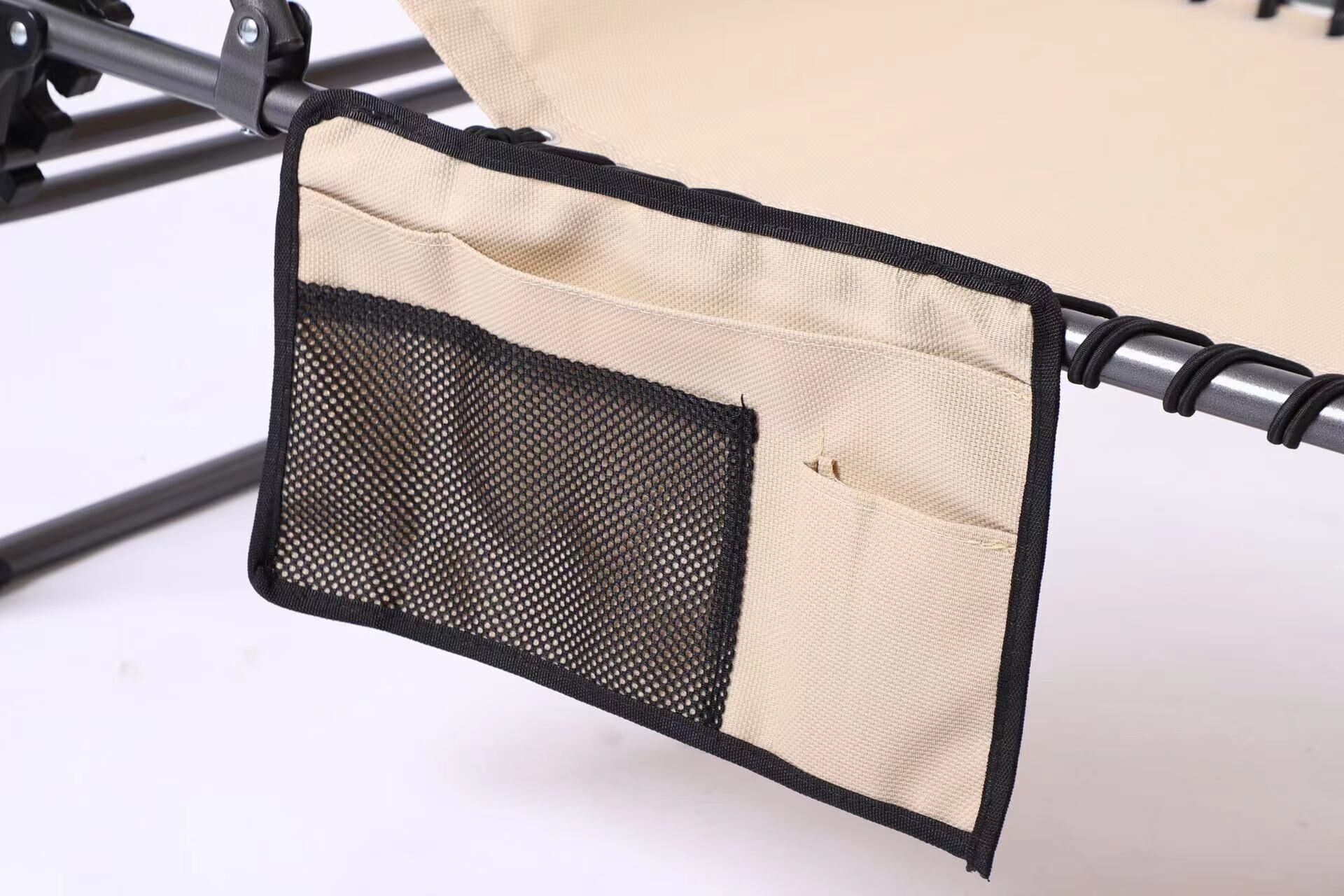 Cadru metalic din oțel vopsit electrostatic oferă stabilitate și rezistență la utilizare frecventă, susținând o greutate de până la 120 kg. În plus, buzunarul lateral este foarte util pentru păstrarea la îndemână a telefonului, cărții, ochelarilor sau altor accesorii mici.