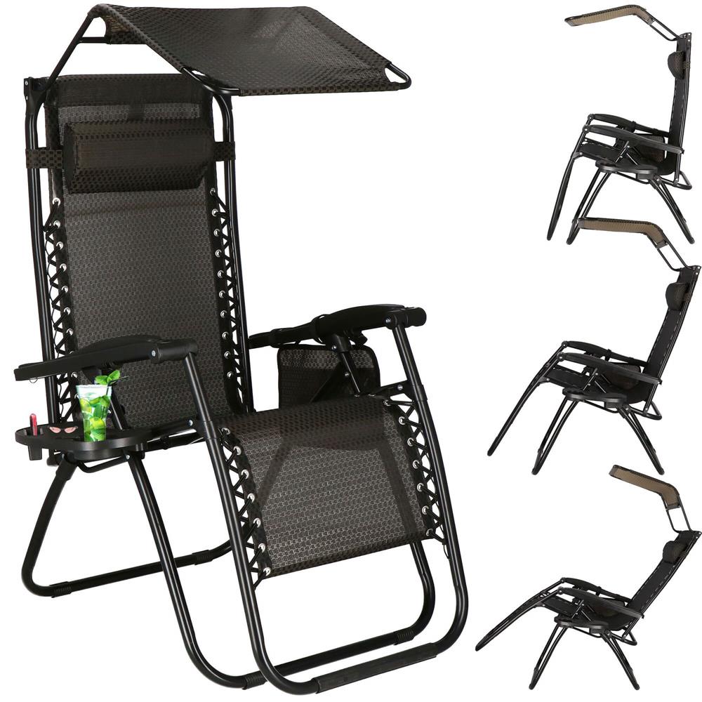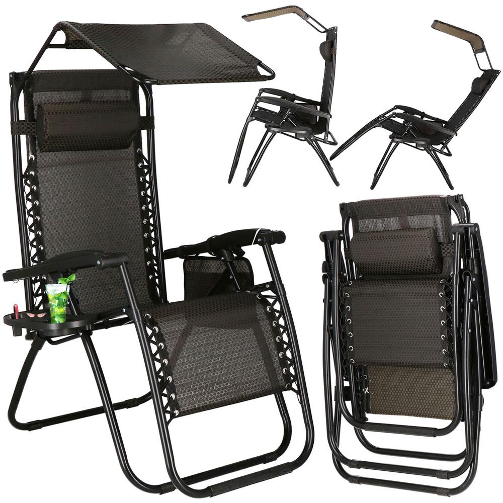 Sezlong pliabil cu parasolar si suport pahare, 77x110x175cm, maro Household NewTrend
