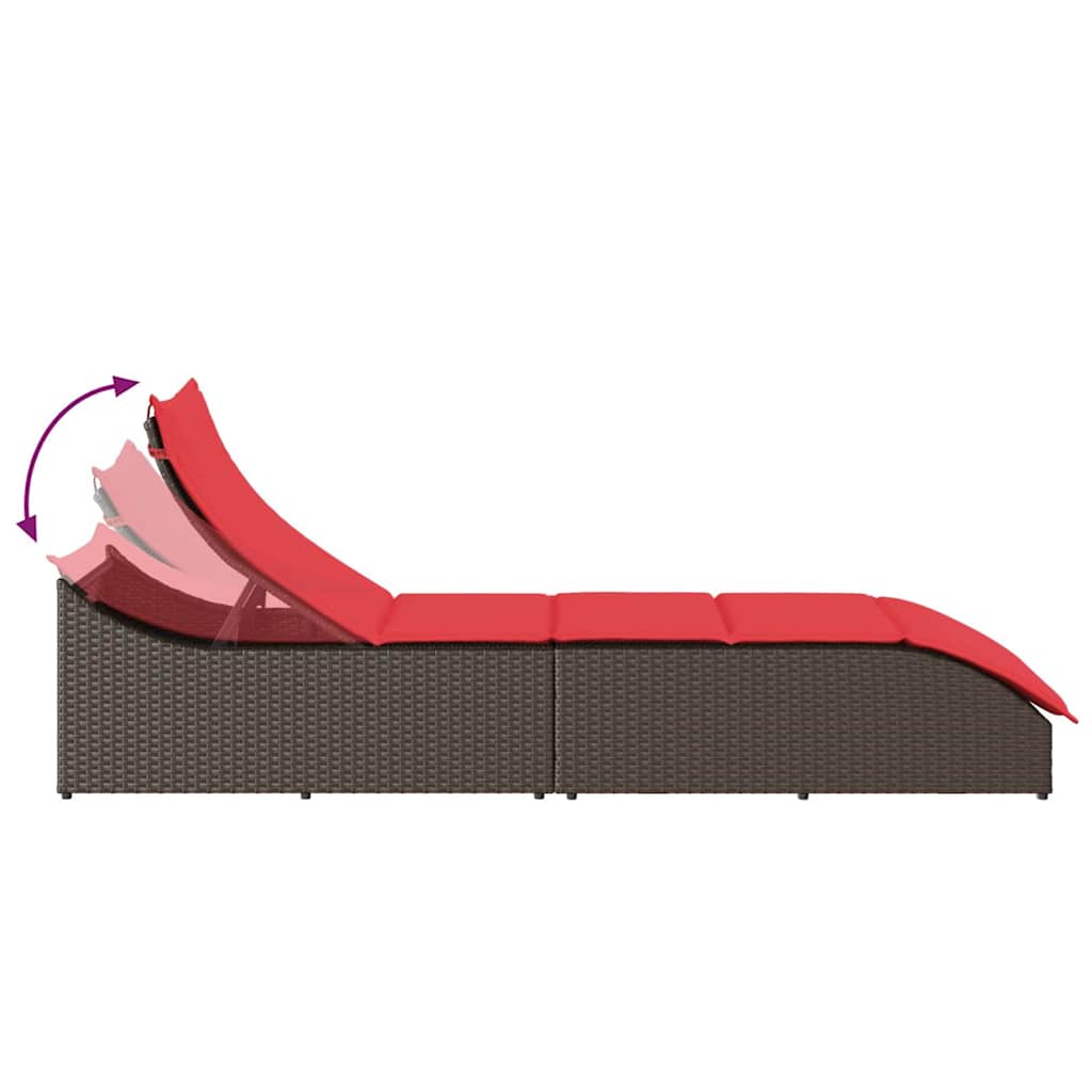 Sezlong pliabil cu pernă și depozitare din polirattan maro GartenMobel Dekor