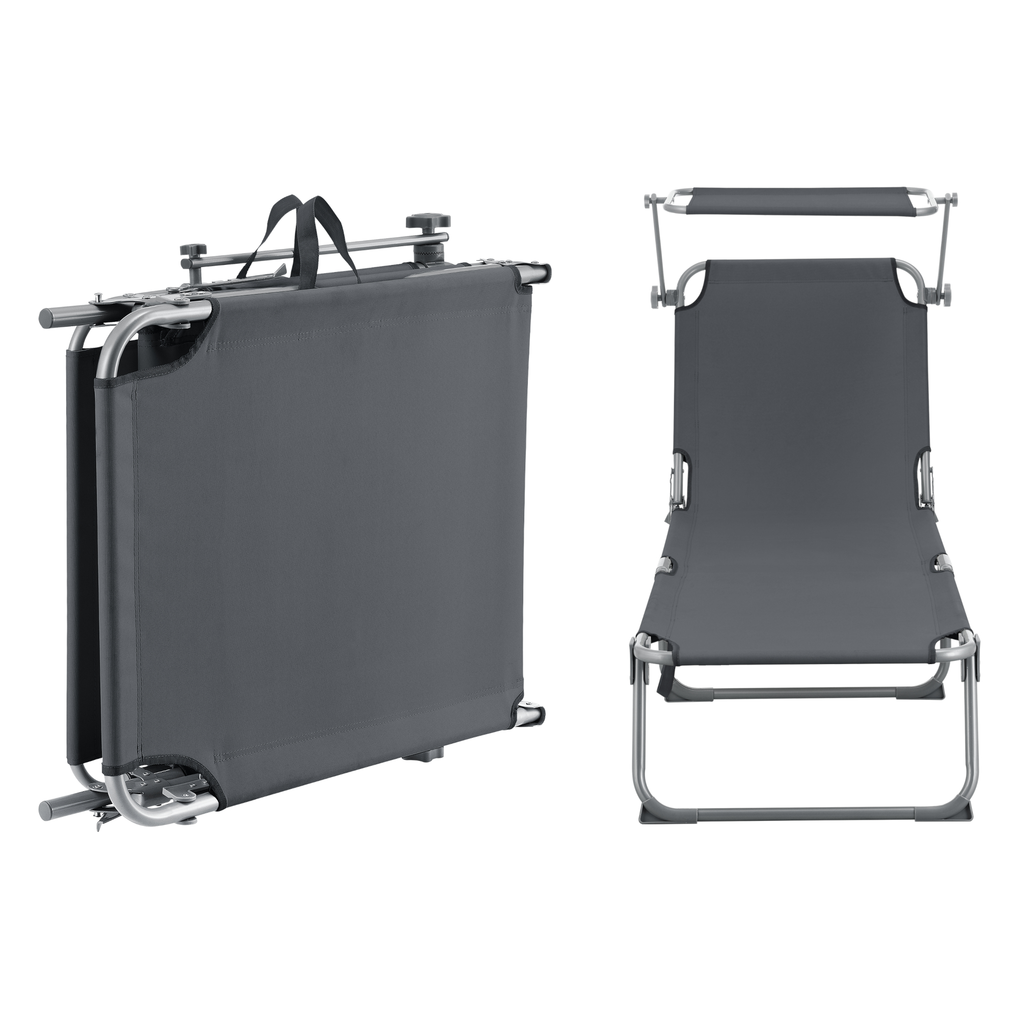Șezlong pliabil de grădină Getaria cu parasolar reglabil, gri închis