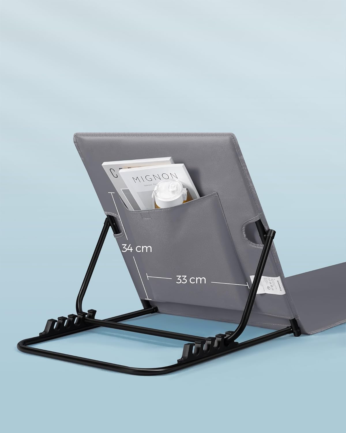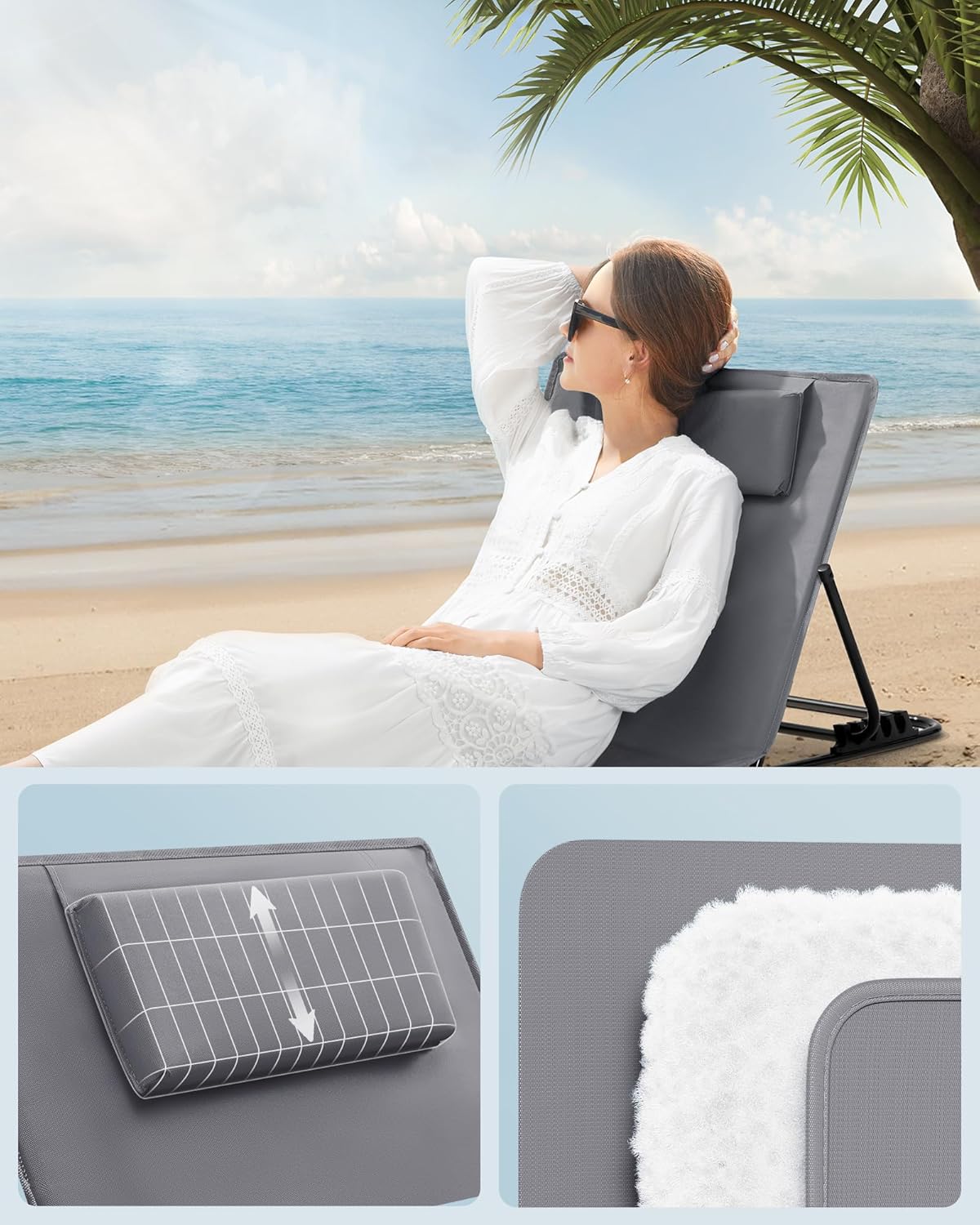 Șezlong pliabil de plajă SONGMICS, cu tetieră și spătar reglabil, gri