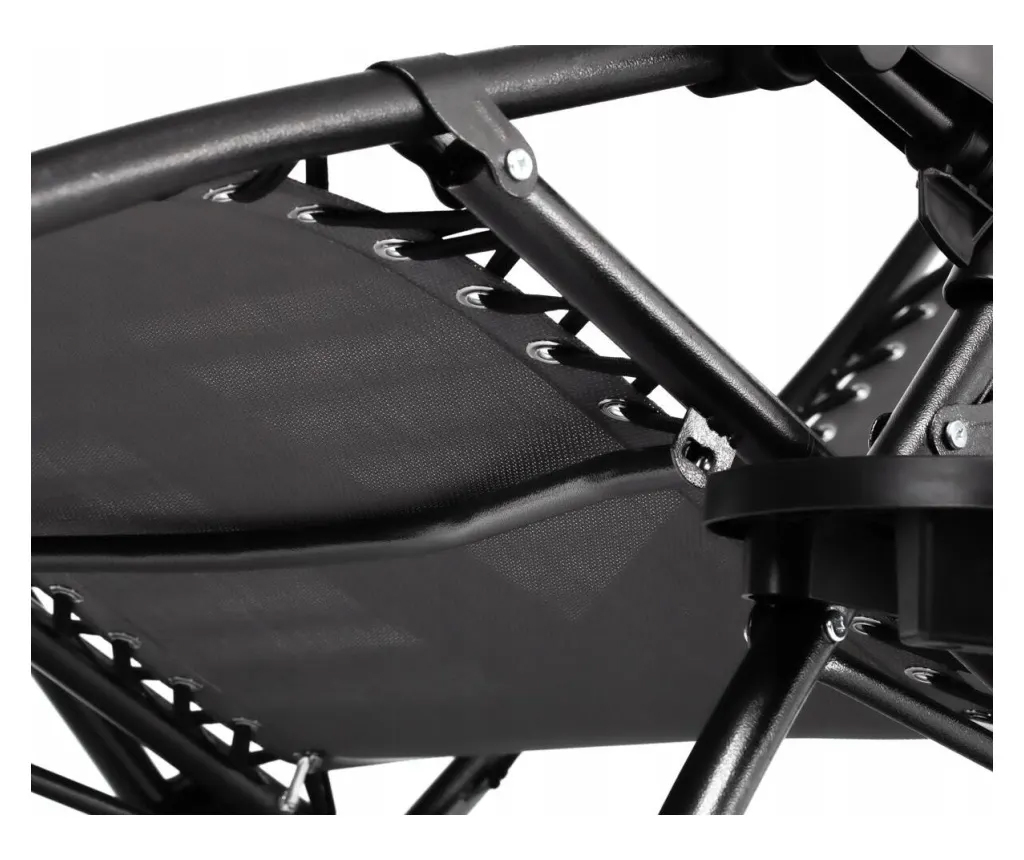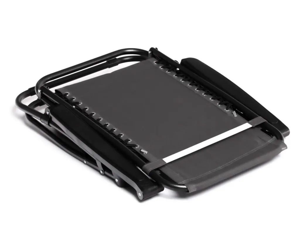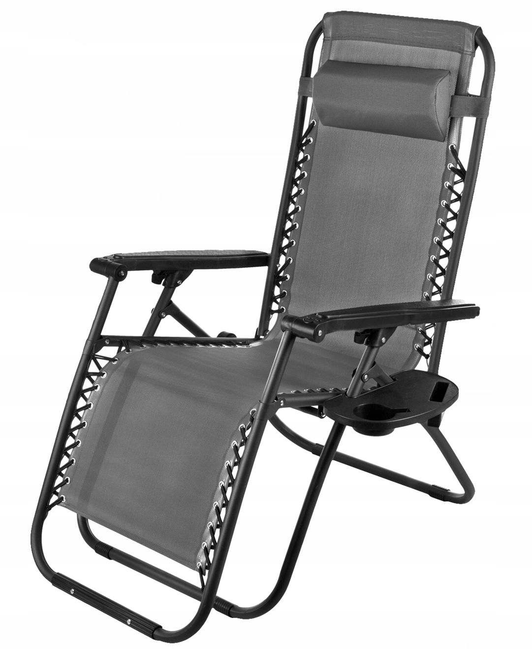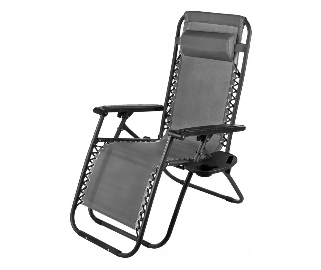Sezlong pliabil din textilene gri, cu tetiera reglabila si suport lateral