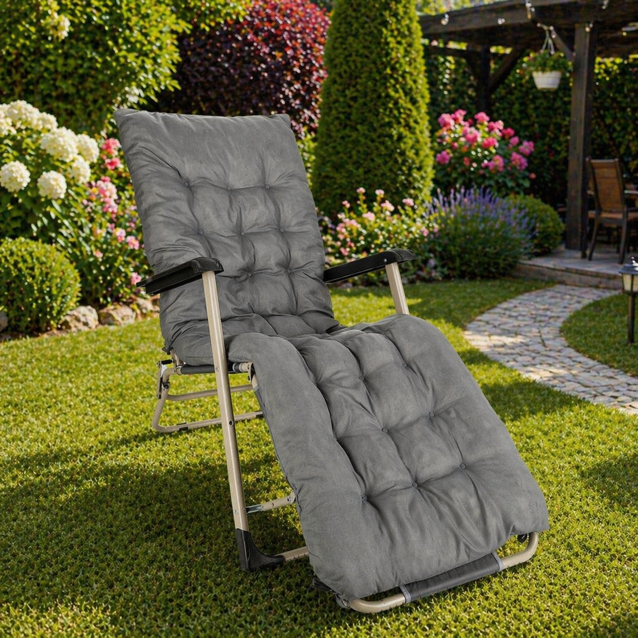 Descriere Sezlong pliabil gradina perna groasa tetiera,