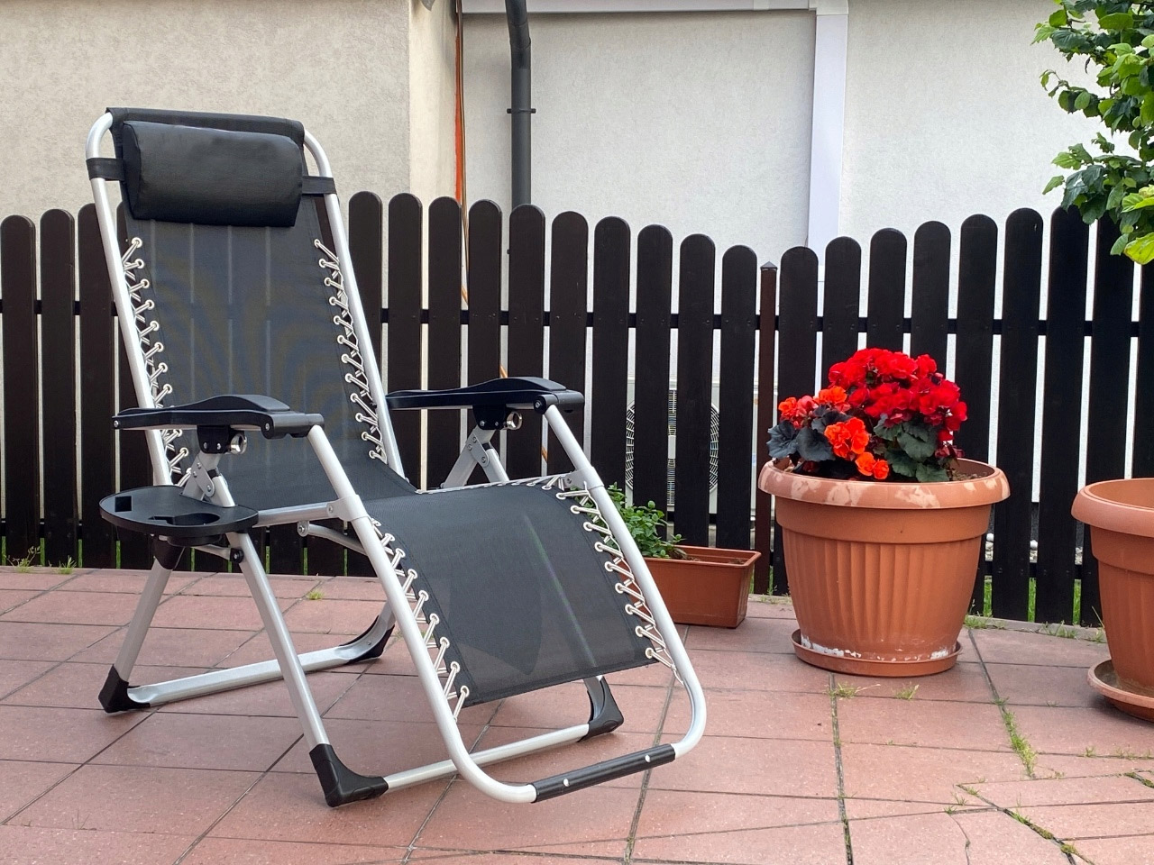 Sezlong pliabil gravitate zero, 175x65 cm, cu masuta si buzunar organizator, 120 kg, negru Household NewTrend