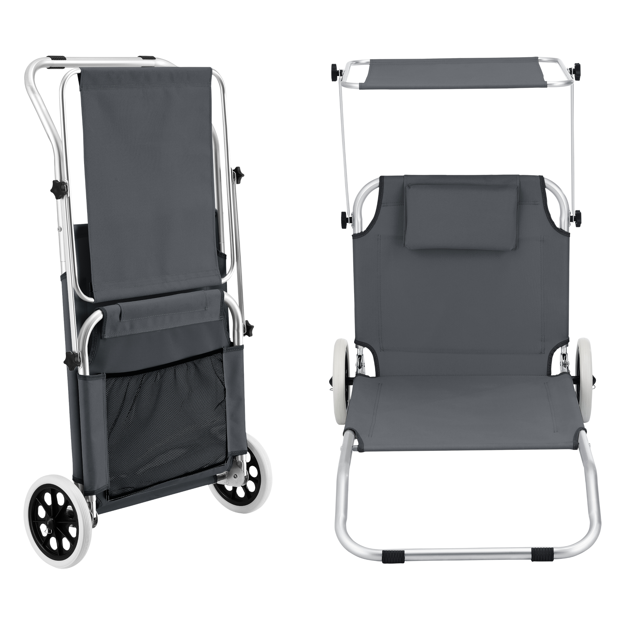 Șezlong pliabil Lazkano cu roți și parasolar reglabil, gri închis