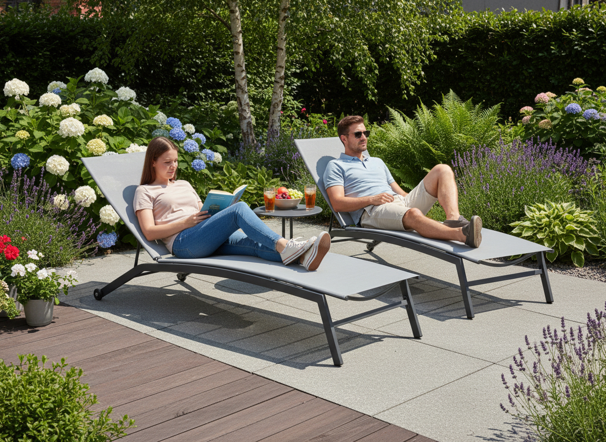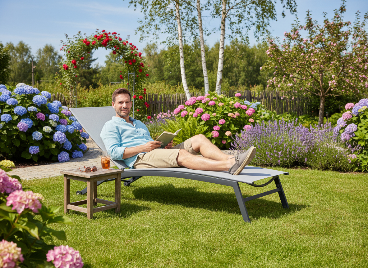 Spatarul reglabil iti permite sa alegi pozitia potrivita pentru citit, bronz sau odihna, iar forma extinsa sustine corpul pentru un plus de confort. Datorita structurii pliabile, sezlongul se depoziteaza mai usor atunci cand nu este folosit, fiind o alegere practica pentru spatii exterioare de diferite dimensiuni.