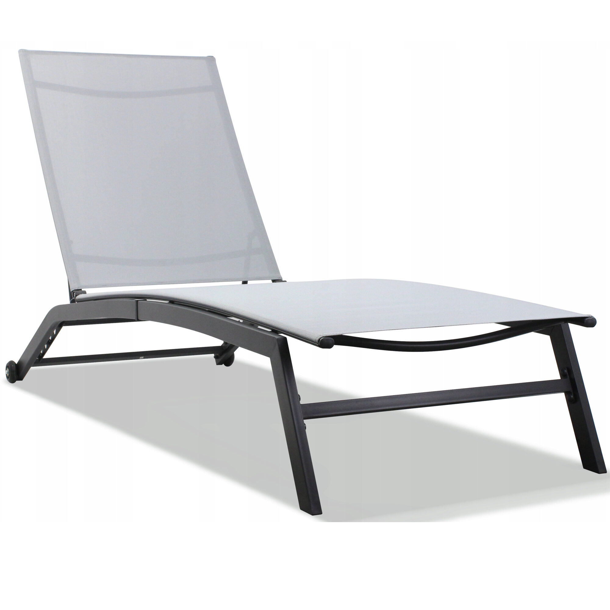 Sezlong pliabil reglabil pentru terasa, balcon si piscina, textilena gri
