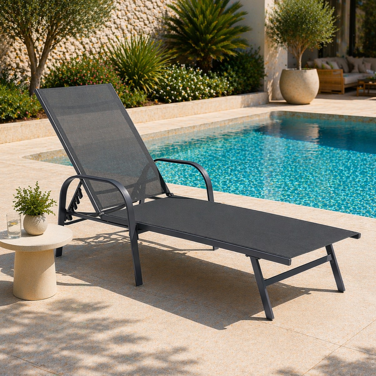 Datorită designului reglabil, poți ajusta poziția spătarului pentru momente de odihnă, lectură sau bronz. Suprafața din textilenă permite o bună circulație a aerului, ceea ce face acest șezlong de exterior confortabil chiar și în zilele călduroase. Structura metalică este concepută pentru utilizare frecventă, iar forma pliabilă îl face mai ușor de manevrat și de depozitat atunci când nu este folosit.