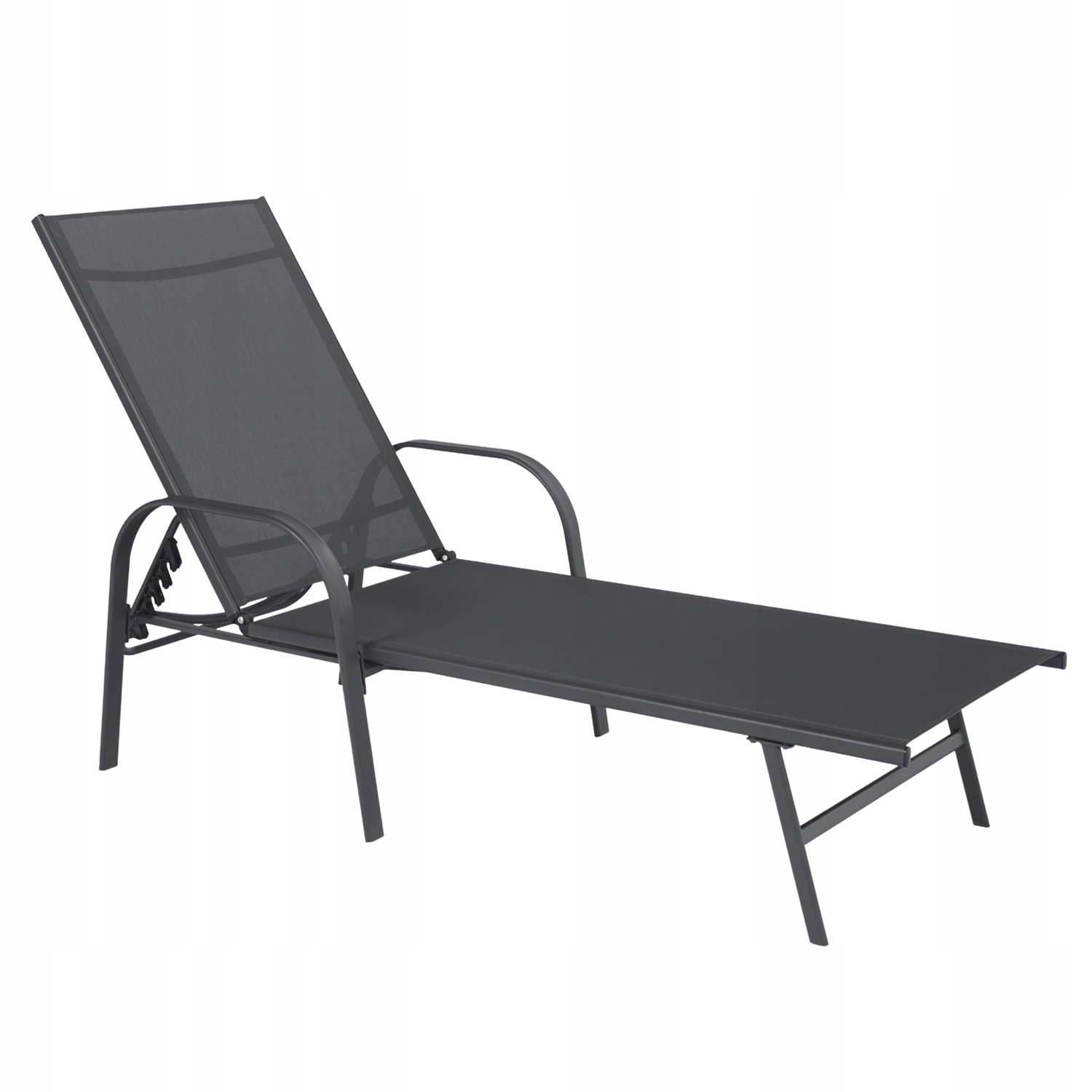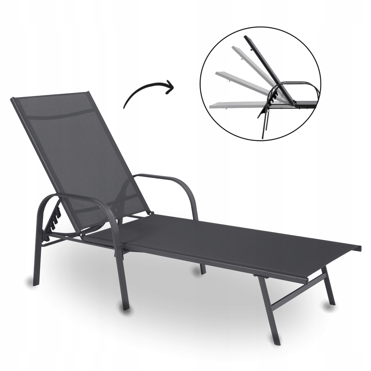 Șezlong pliabil reglabil pentru terasă și balcon, textilenă, oțel, gri închis