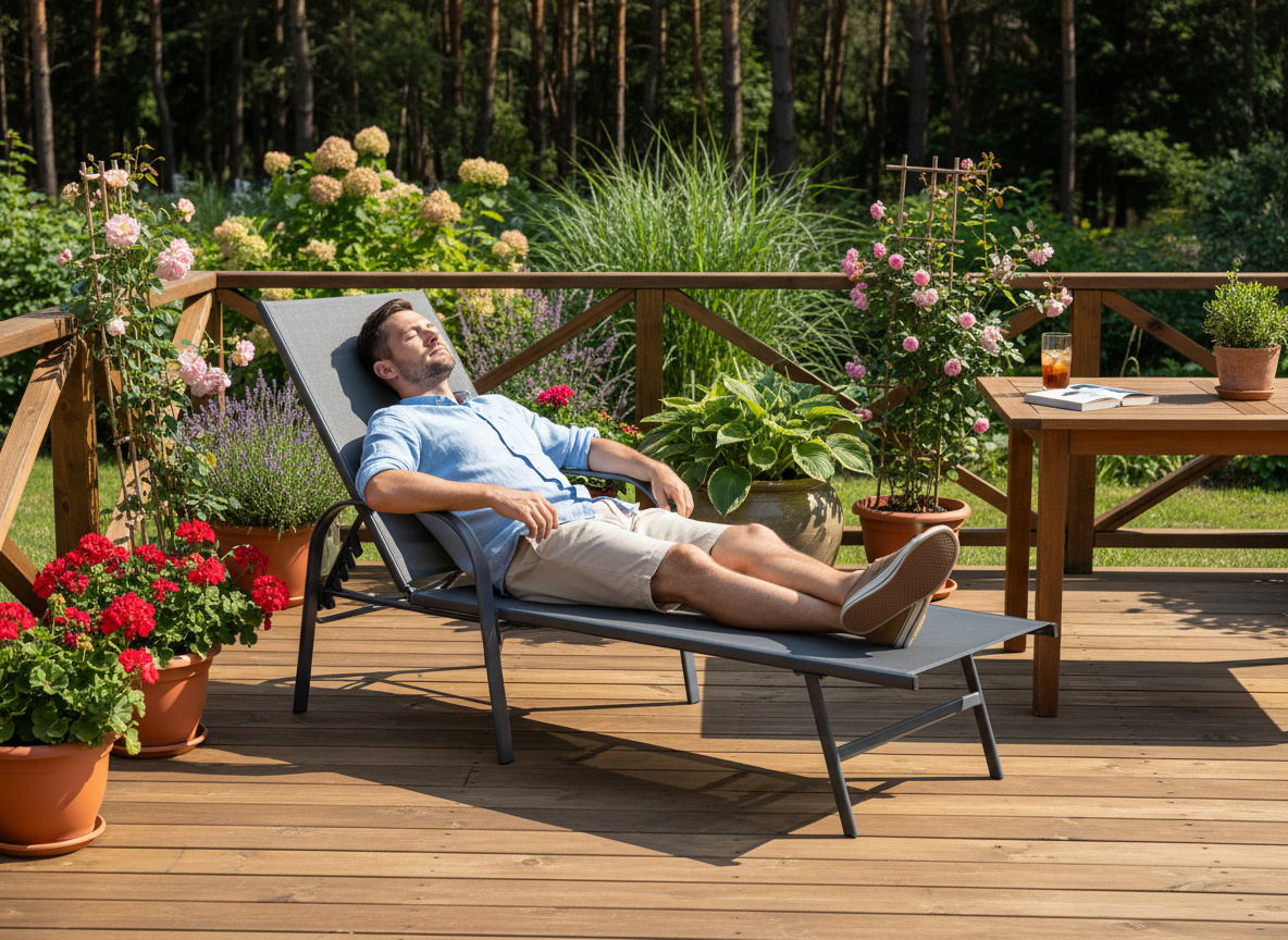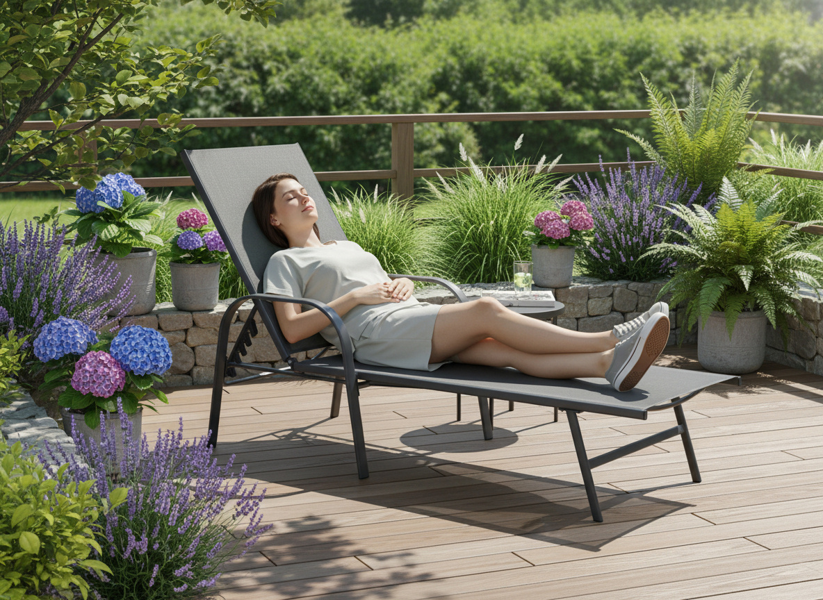 Utilizare: așază șezlongul pe o suprafață plană și stabilă, reglează spătarul în poziția dorită și folosește-l pentru relaxare în aer liber. Este ideal pentru momente de odihnă zilnică, citit, stat la soare sau completarea unei zone lounge exterioare.
