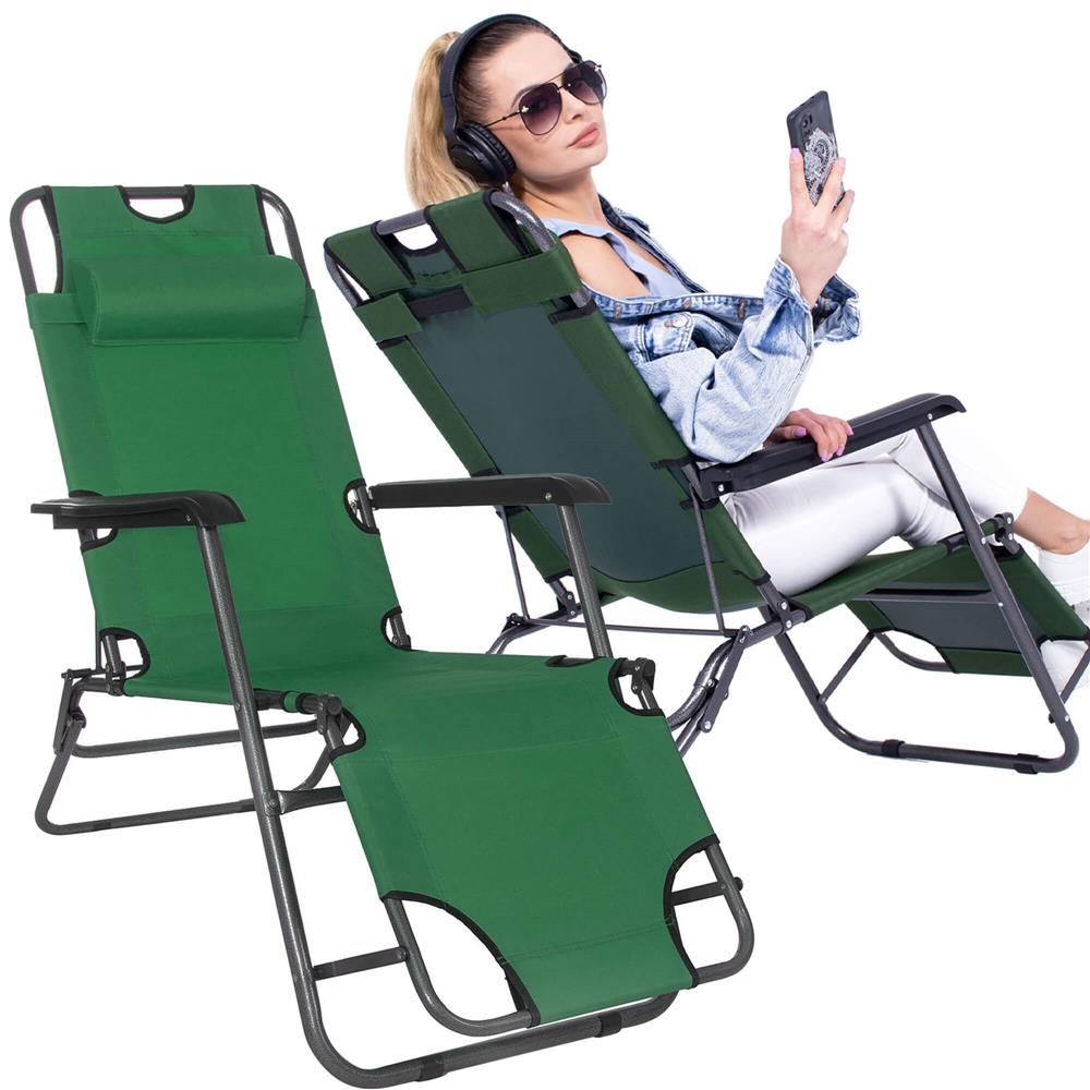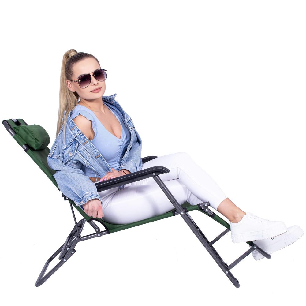 Sezlong pliabil Sersimo GC5 Zero Gravity, reglabil, verde, 80x60x153 cm