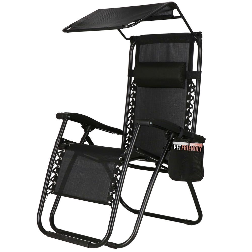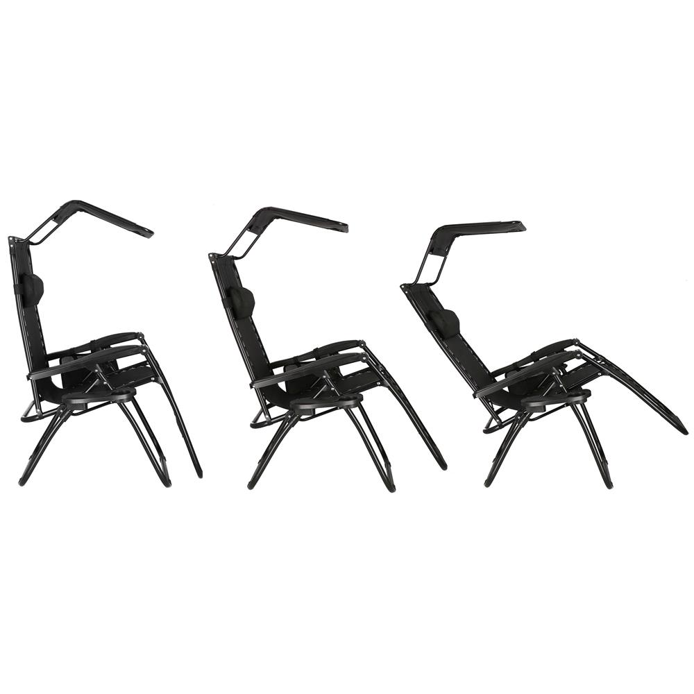 Sezlong pliabil SERSIMO Zero Gravity cu parasolar si suport pahar, negru