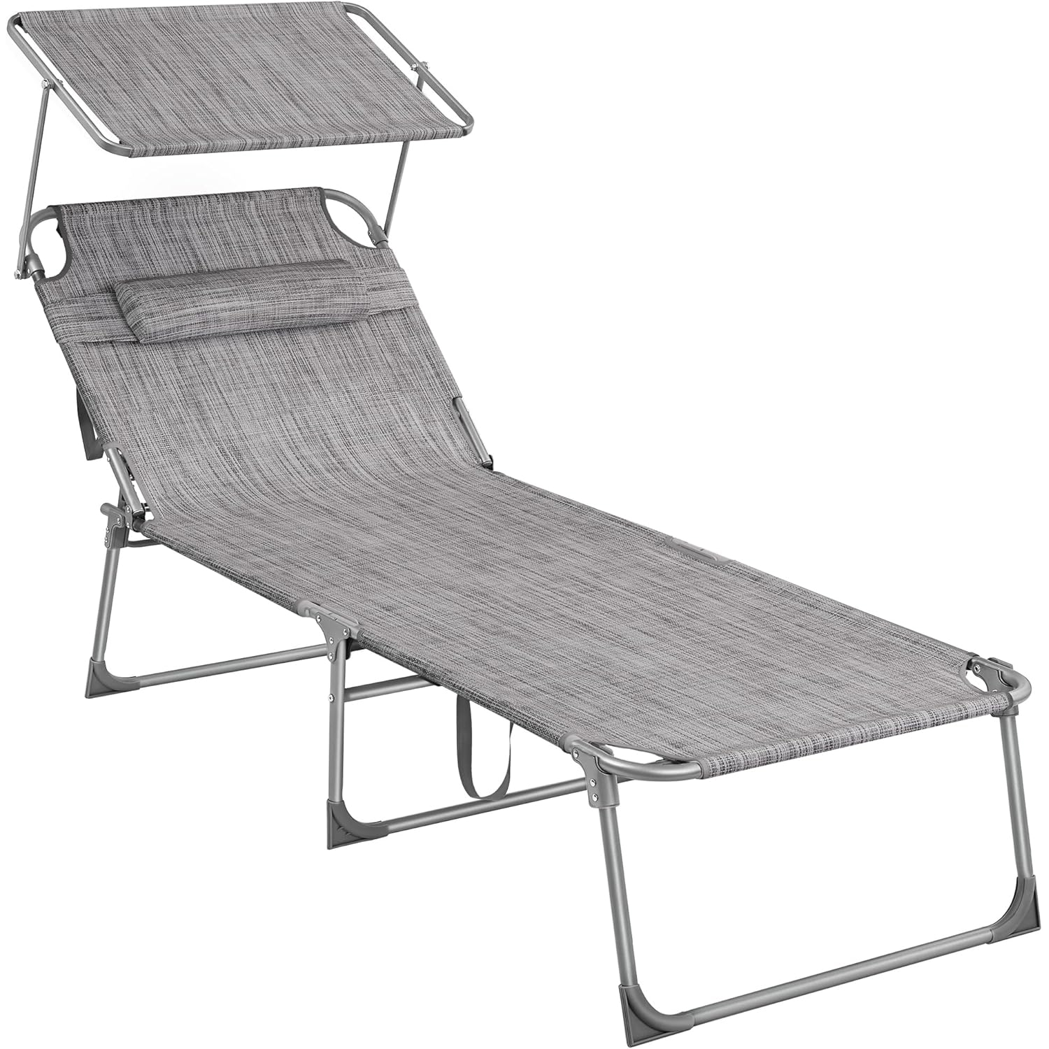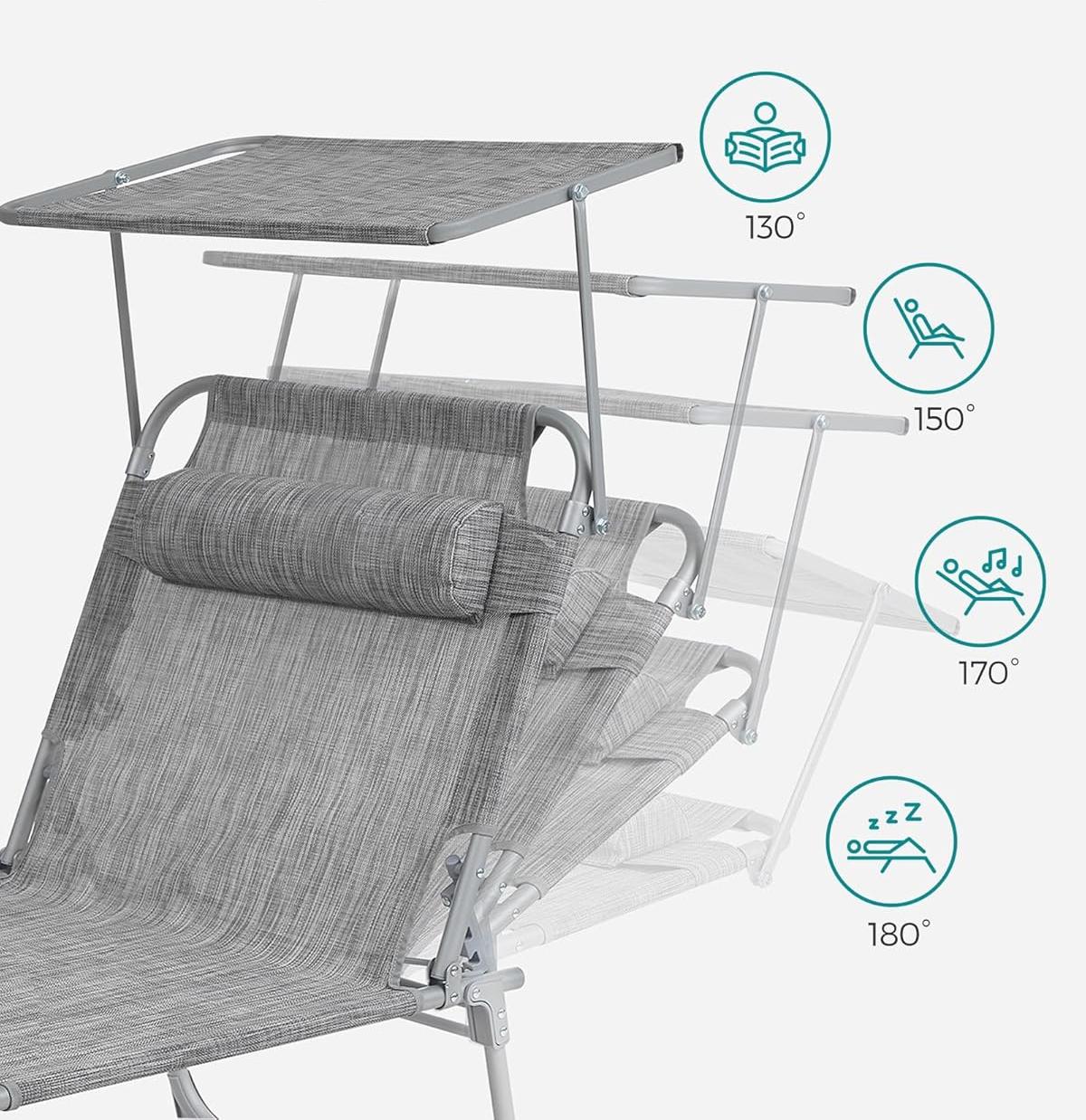 Sezlong pliabil SONGMICS cu parasolar, tetiera si spatar reglabil, gri