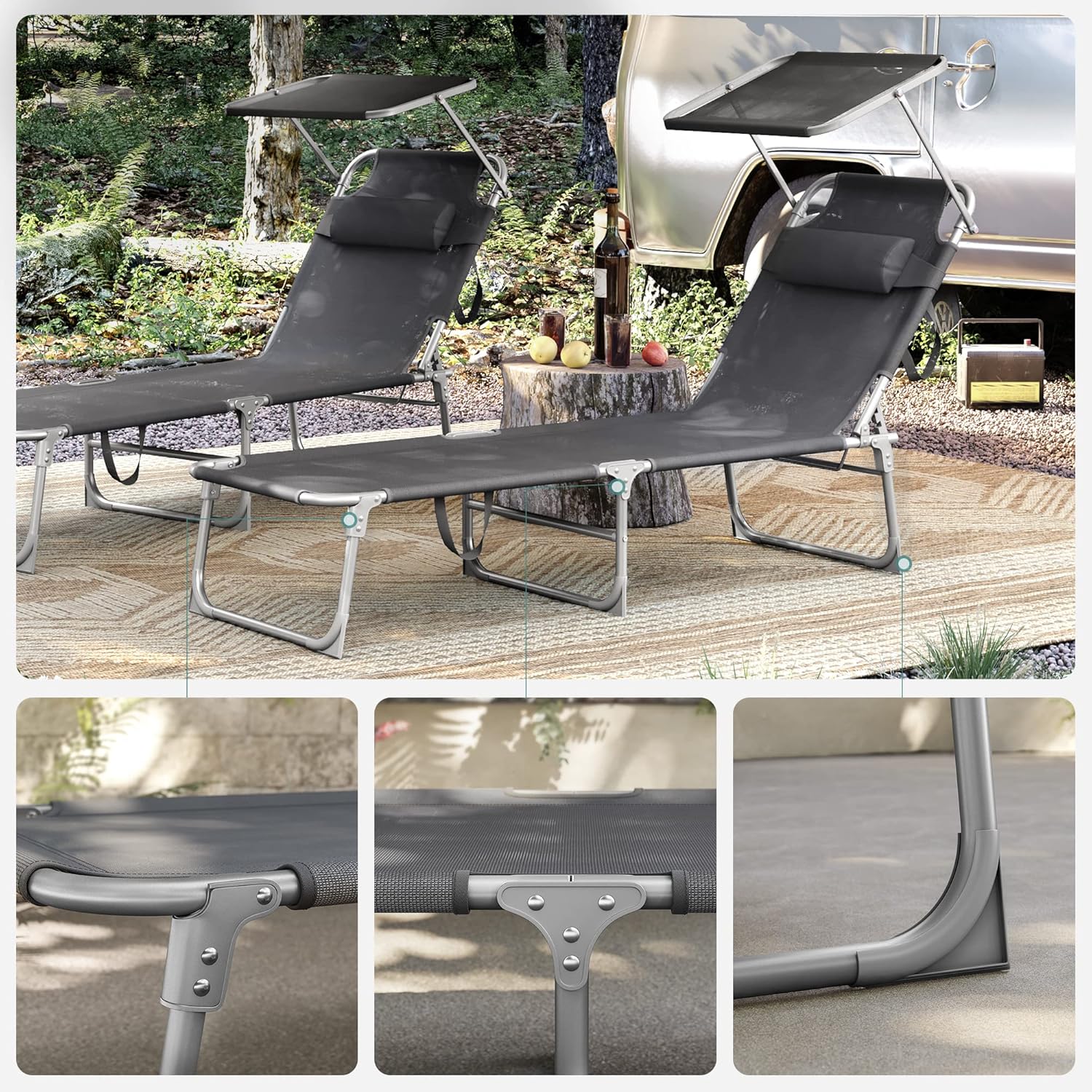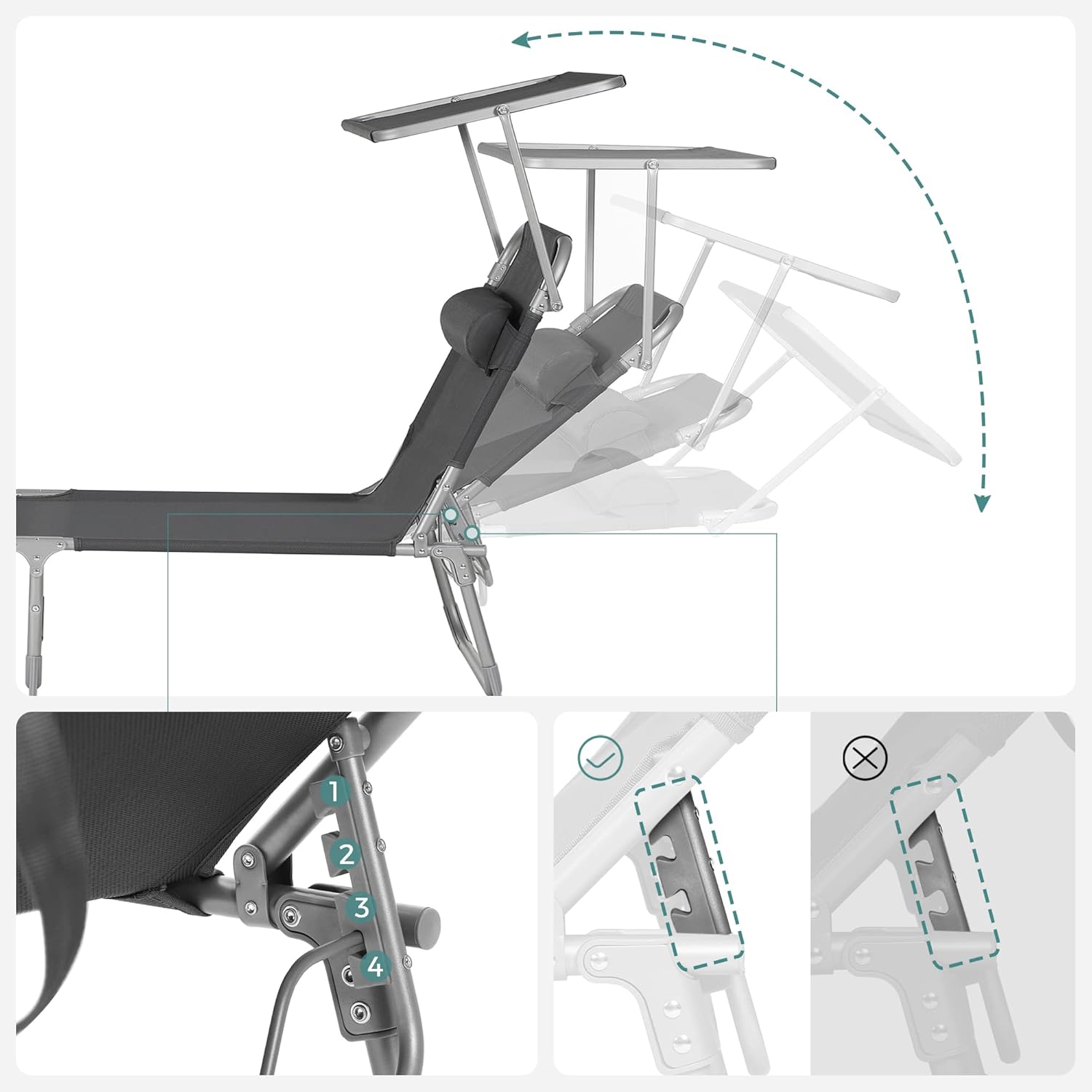 Descriere Sezlong pliabil SONGMICS parasolar, tetiera spatar