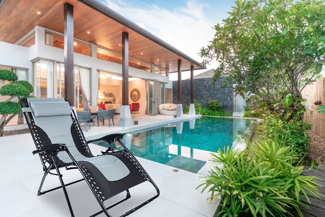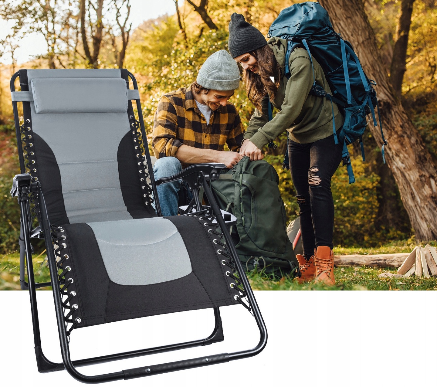 Sezlong pliant gravitate zero pentru plaja si gradina, cu tetiera