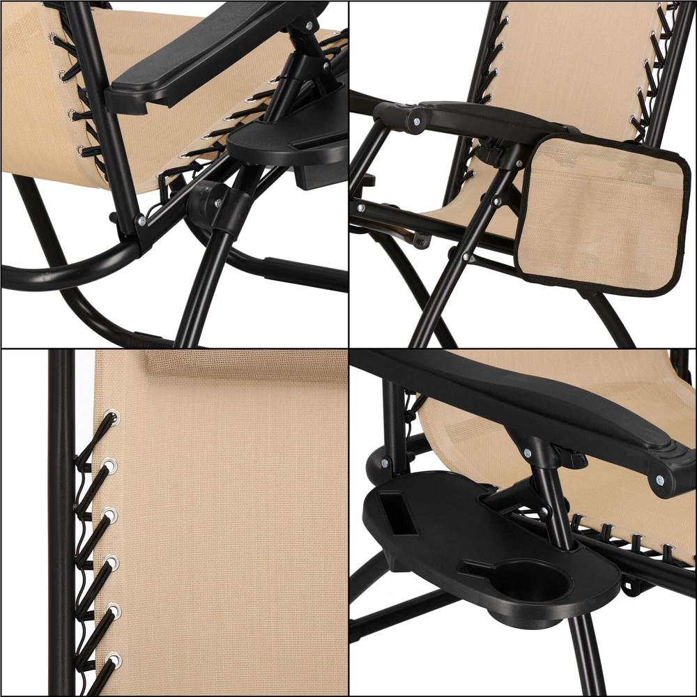 Sezlong pliant zero gravity pentru plaja si gradina, cu tetiera, bej