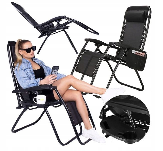 Culoare: negru Inaltime totala in pozitia de sedere: aprox. 110 cm Latime totala: aprox. 67 cm / cu masa: aprox. 76 cm Inaltimea scaunului de la sol in pozitie asezata: 40 cm Adancimea scaunului: aprox. 50 cm Inaltimea spatarului: 76 cm Lungimea canapelei cand este complet intinsa: aprox. 175 cm Lungimea tesaturii de pe scaun: aprox. 154 cm Greutatea maxima de utilizare: aprox: 120 kg Reglare (masurata pe suportul pentru picioare): de la 1 cm la 35 cm deasupra solului Masurarea lungimii maxime desfasurate a sezlongului si lungimea tesaturii se masoara cu un centimetru moale, tinand cont de toate curburile din structura Constructie metalica durabila si robusta - are un sistem de blocare a pozitiei pentru a asigura siguranta in timpul utilizarii. In plus, cadrul sezlongurilor este protejat cu un strat anticoroziv, ceea ce il face rezistent la conditiile meteorologice schimbatoare. Blocarea pozitiei scaunului Perna ergonomica inclusa Organizator lateral pentru bauturi Organizator sub forma unei pungi cu inchidere Velcro Componente sigure, antiderapante, Cadru protejat cu strat anticoroziv, Material textilene care nu se incalzeste, Material impermeabil pentru scaun, Forma ergonomica a canapelei, pozitie reglabila Scaun confortabil din textilena - a fost realizat din material textilena flexibil si rezistent la greutate, care se adapteaza la forma corpului persoanei care sta pe el. Ca urmare, va puteti bucura de o relaxare confortabila fara a va face griji ca scaunul se va deforma. De asemenea, materialul este usor de curatat si nu absoarbe umezeala, asigurand un confort de lunga durata.Pozitie reglabila si accesorii suplimentare cu o perna ergonomica inclusa. In plus, sezlongul este echipat cu un organizator lateral pentru bauturi si o geanta cu inchidere Velcro, permitandu-va sa pastrati accesoriile esentiale la indemana. Elementele sigure, anti-alunecare si materialul textilene care nu se incalzeste ofera confort si siguranta suplimentara pentru utilizare.