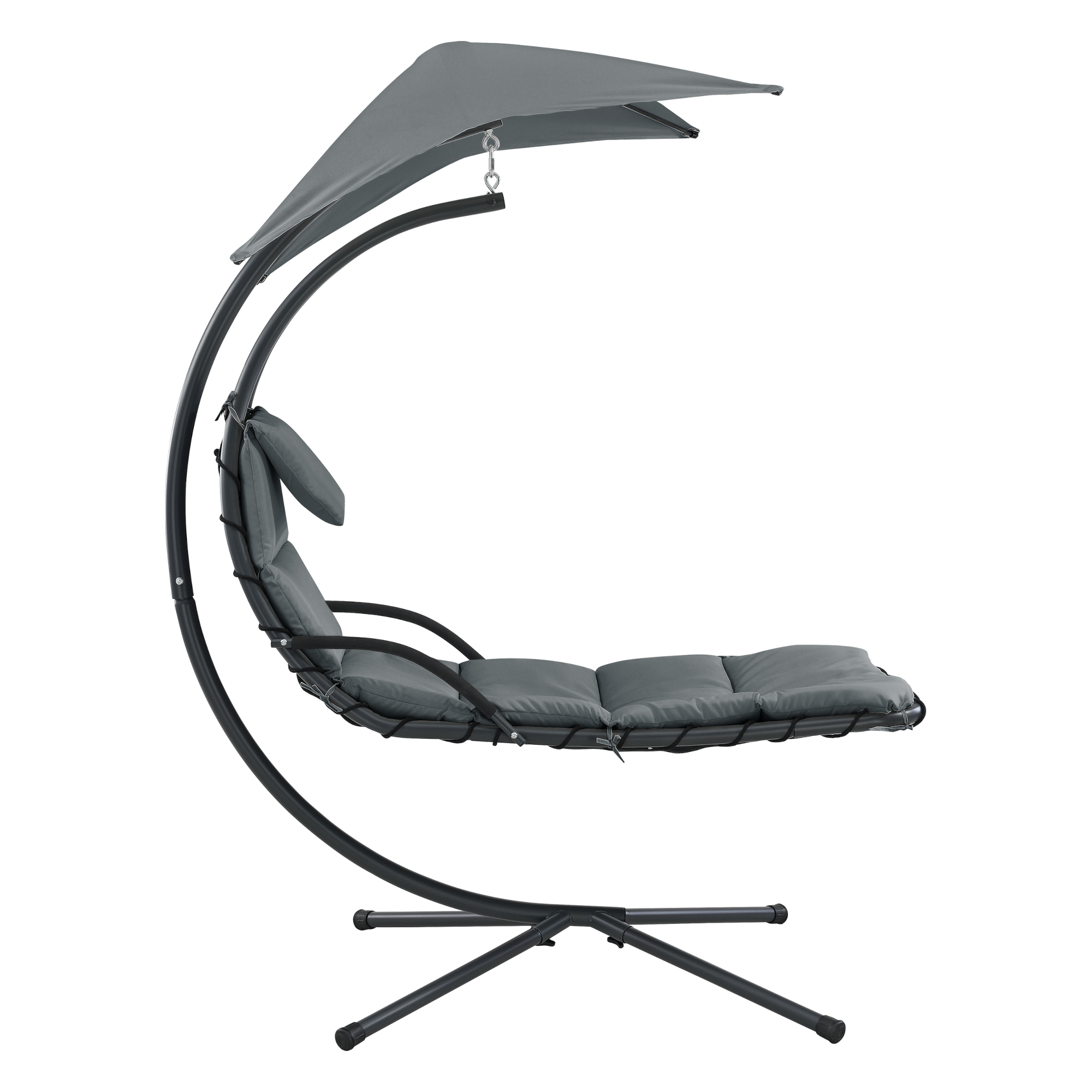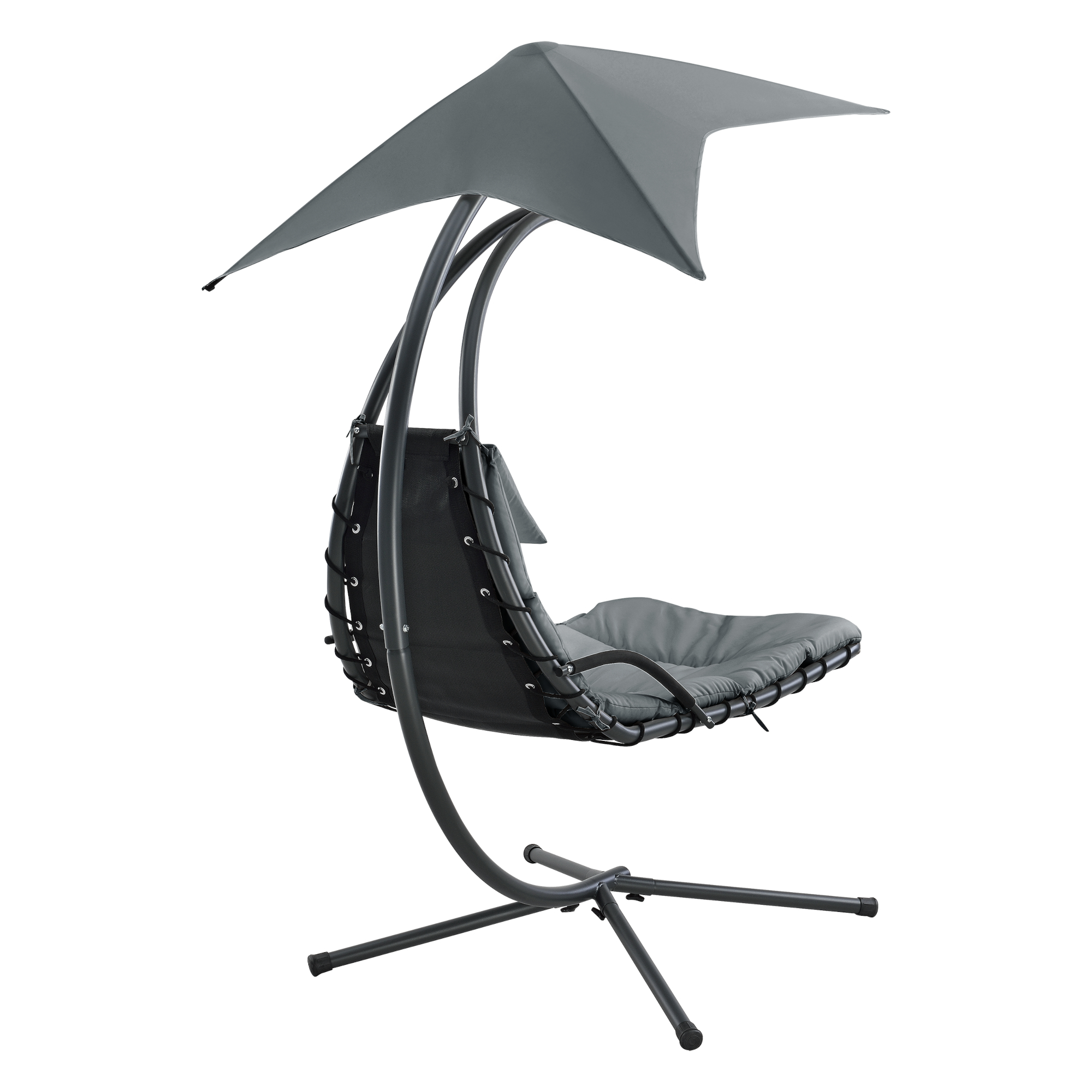 Șezlong suspendat cu baldachin și pernă, gri, pentru grădină și terasă