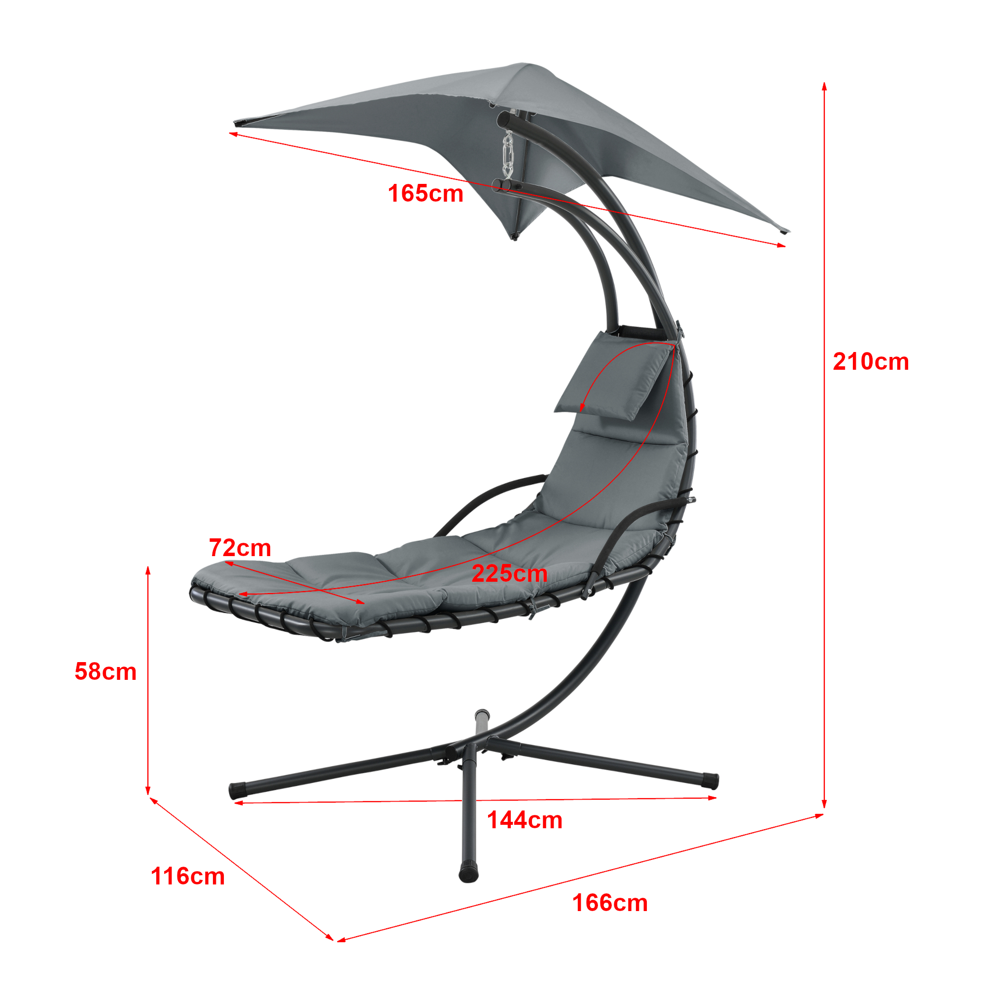 Descriere Șezlong suspendat baldachin și pernă, gri,