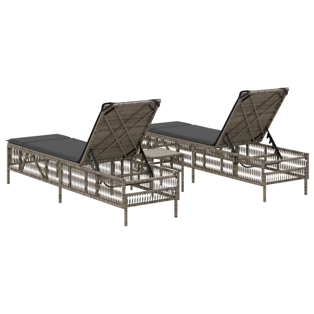 Șezlonguri, 2 buc., cu masă, gri, poliratan GartenMobel Dekor