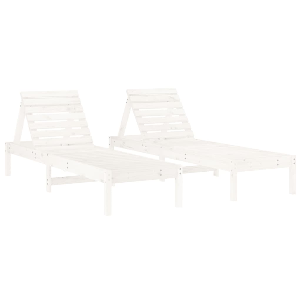 Șezlonguri de plajă cu masă, 2 buc, alb, lemn masiv de pin GartenMobel Dekor
