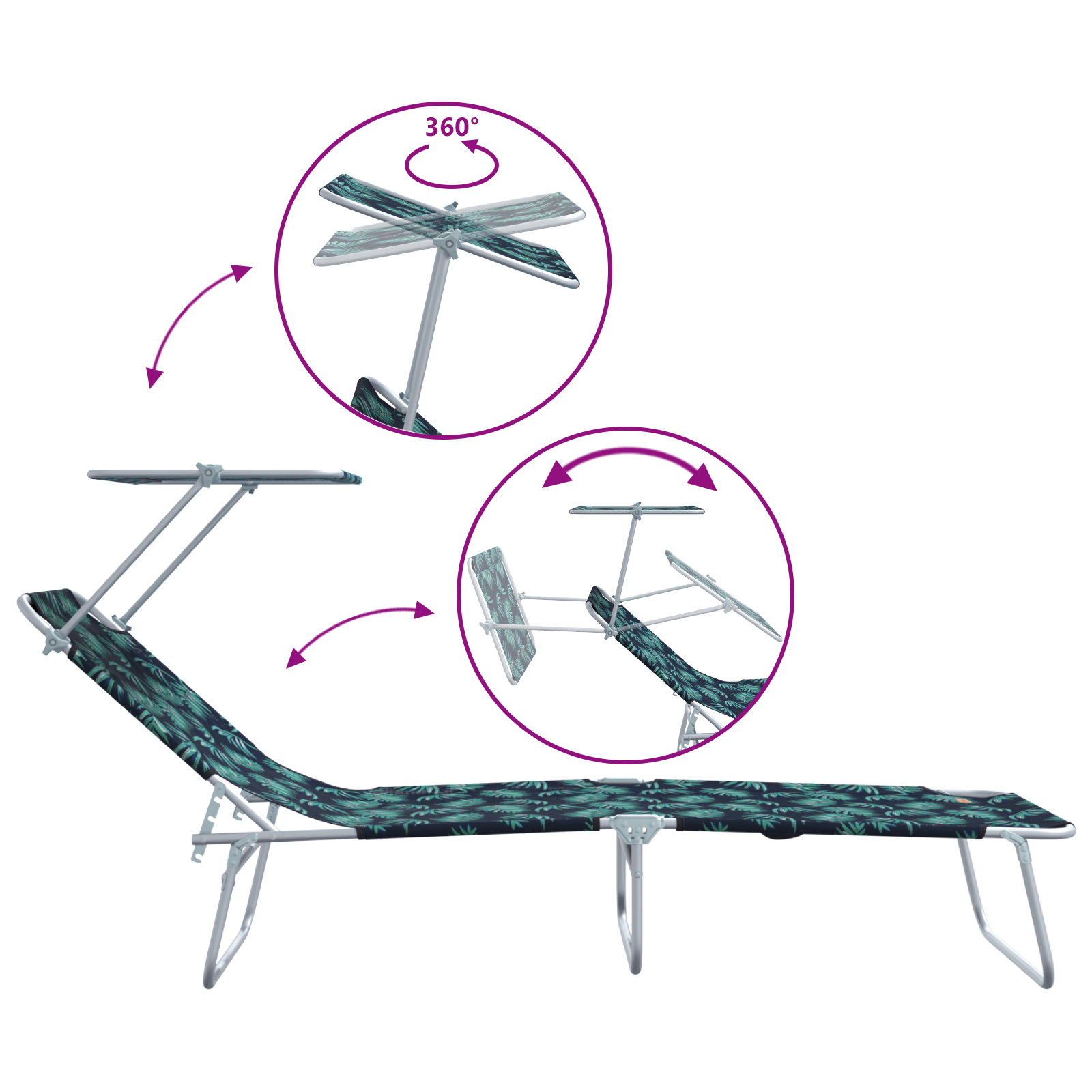 Șezlonguri pliabile 2 buc cu model cu frunze din material Oxford 600D GartenMobel Dekor