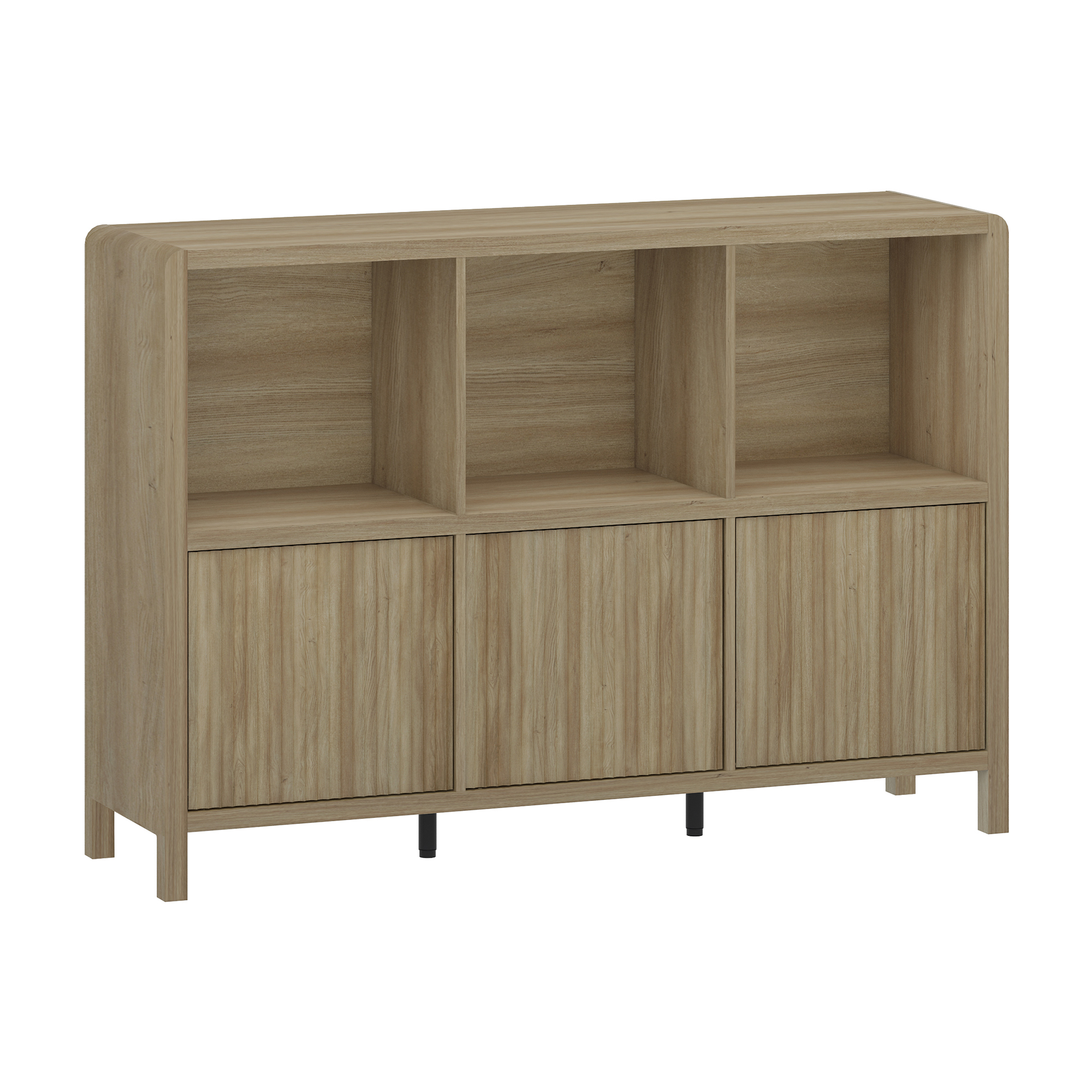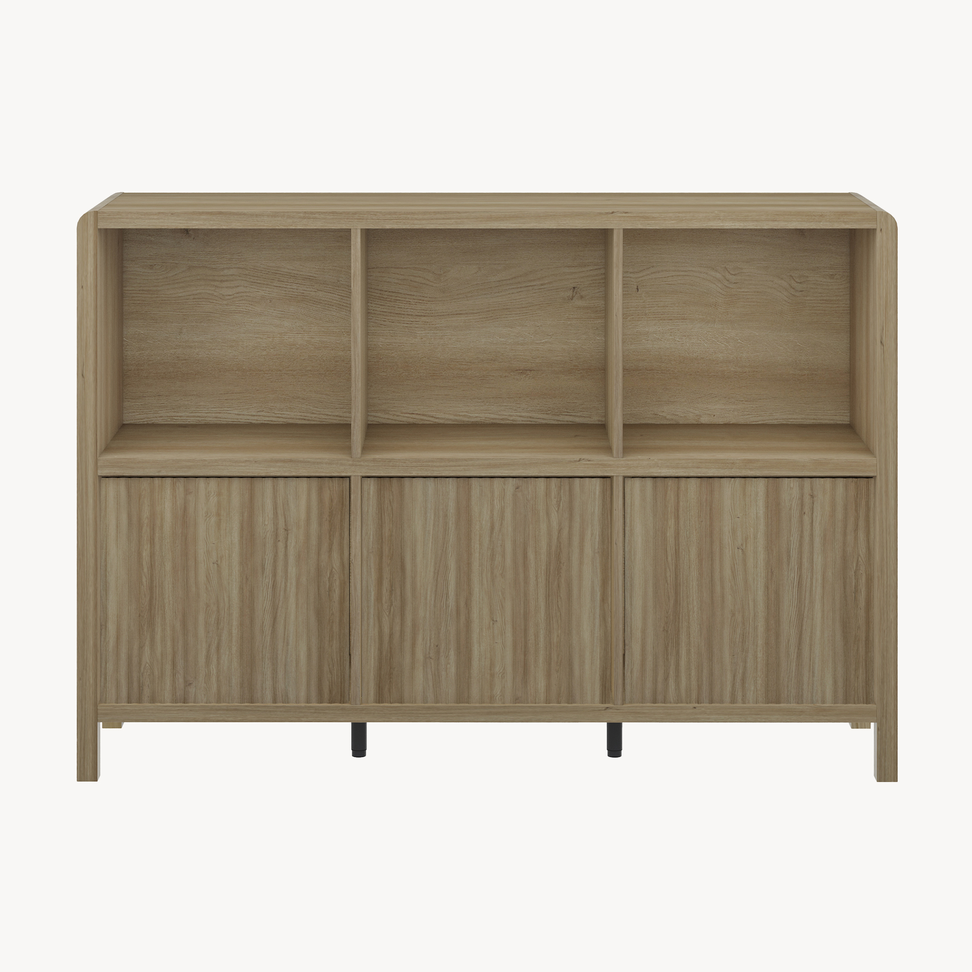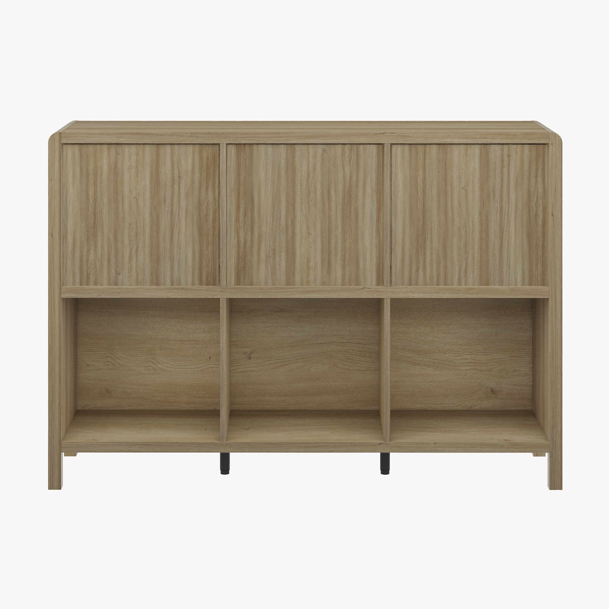 Der Wohnzimmerschrank ist ein stilvolles und praktisches Möbelstück, das Ihnen die perfekte Ergänzung für Ihren Wohnraum bietet. Er verfügt über drei offene Ablagefächer sowie drei geschlossene Fächer mit Türen.