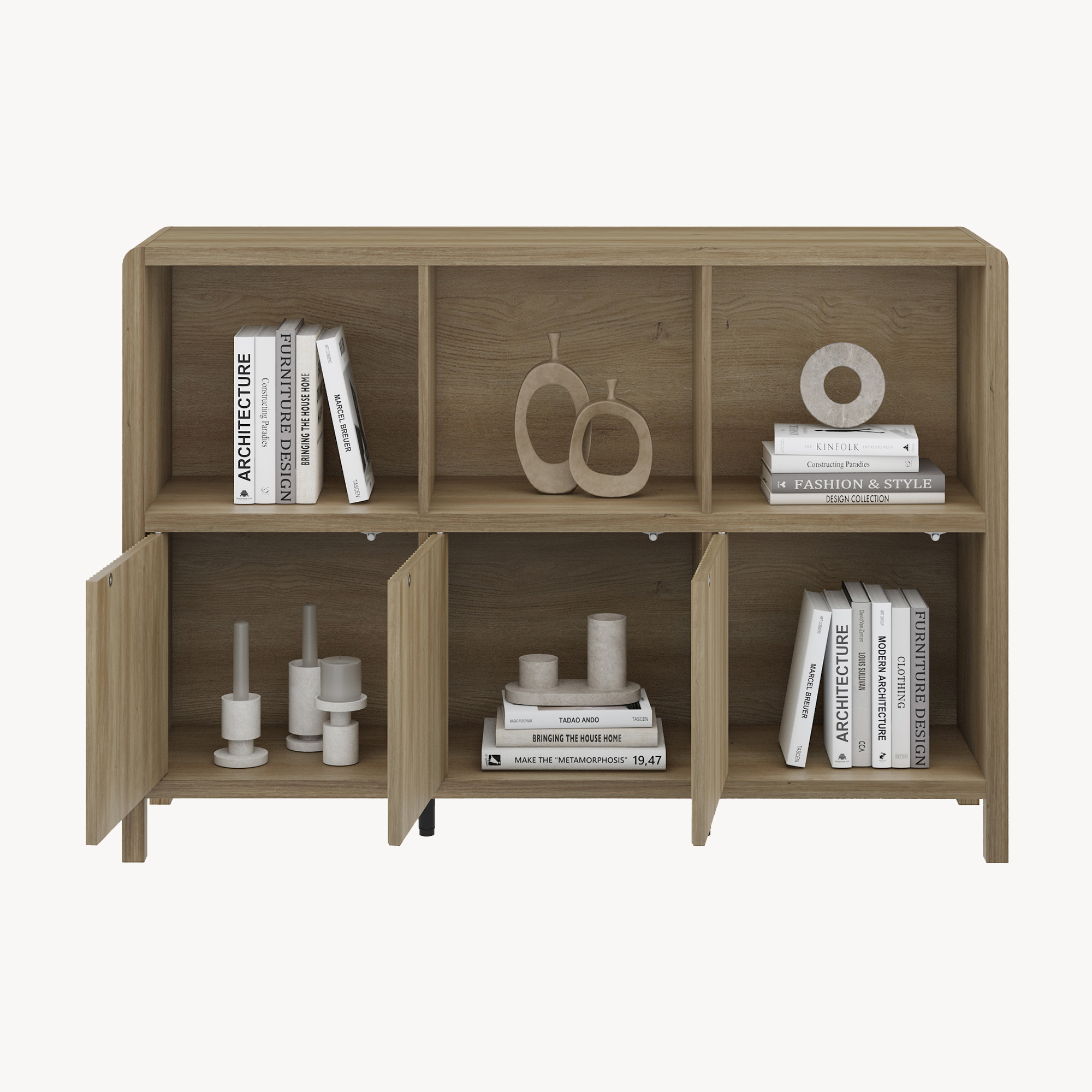 Das Sideboard eignet sich ideal zum Verstauen von sämtlichen Gegenständen. Die obere Ablagefläche und die offenen Fächer schaffen Platz für Pflanzen und Dekorationen, während im Inneren Bücher, DVDs und sämtliche andere Utensilien griffbereit aufbewahrt werden können.