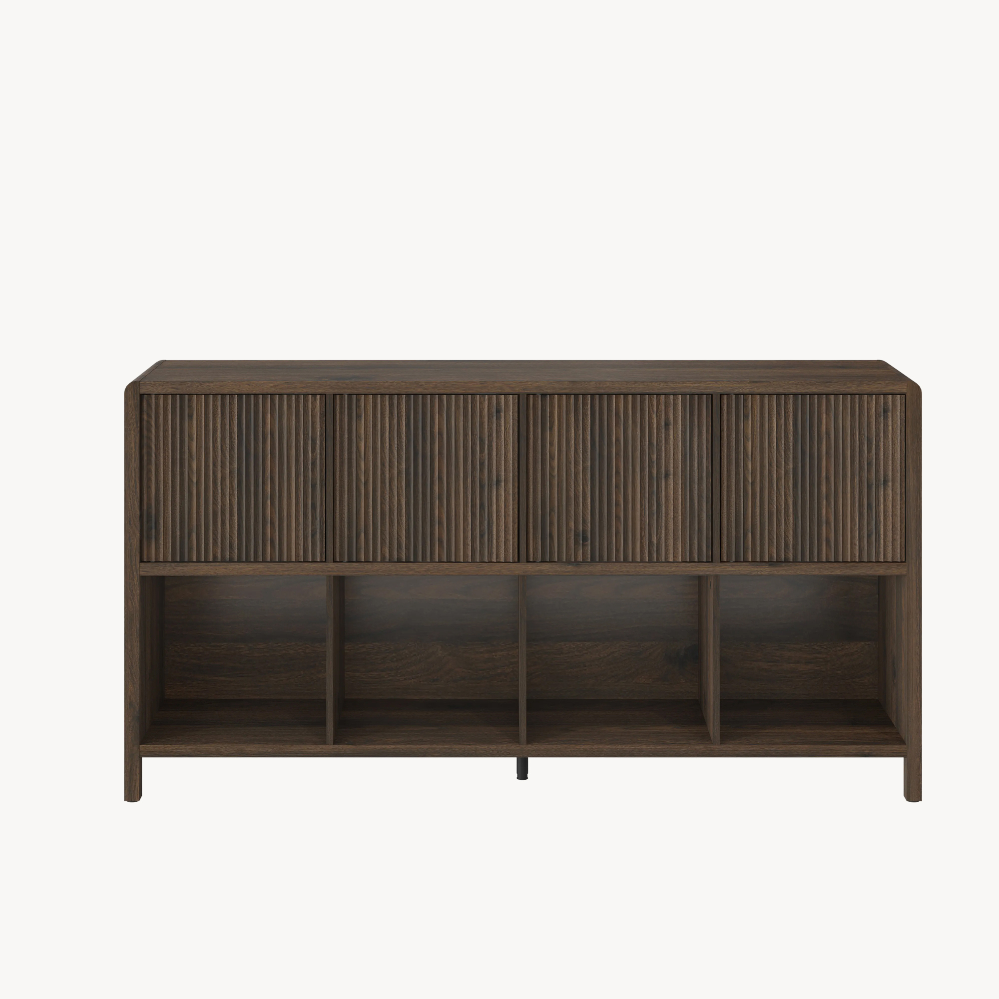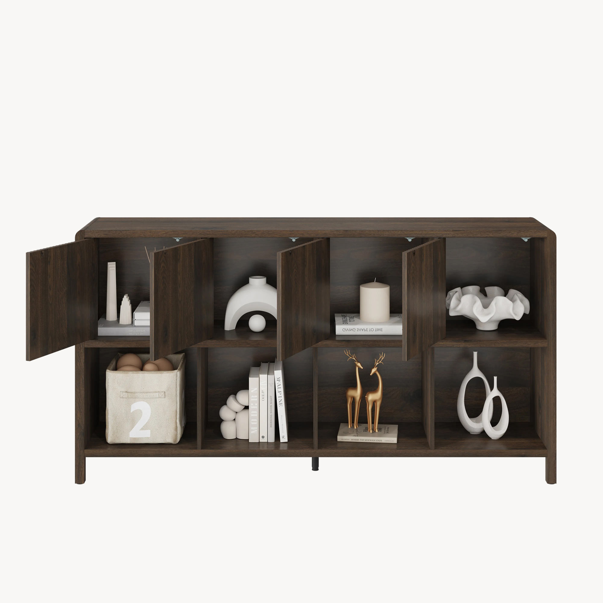 Der Wohnzimmerschrank ist ein stilvolles und praktisches Möbelstück, das Ihnen die perfekte Ergänzung für Ihren Wohnraum bietet. Er verfügt über vier offene Ablagefächer sowie vier geschlossene Fächer mit Türen.