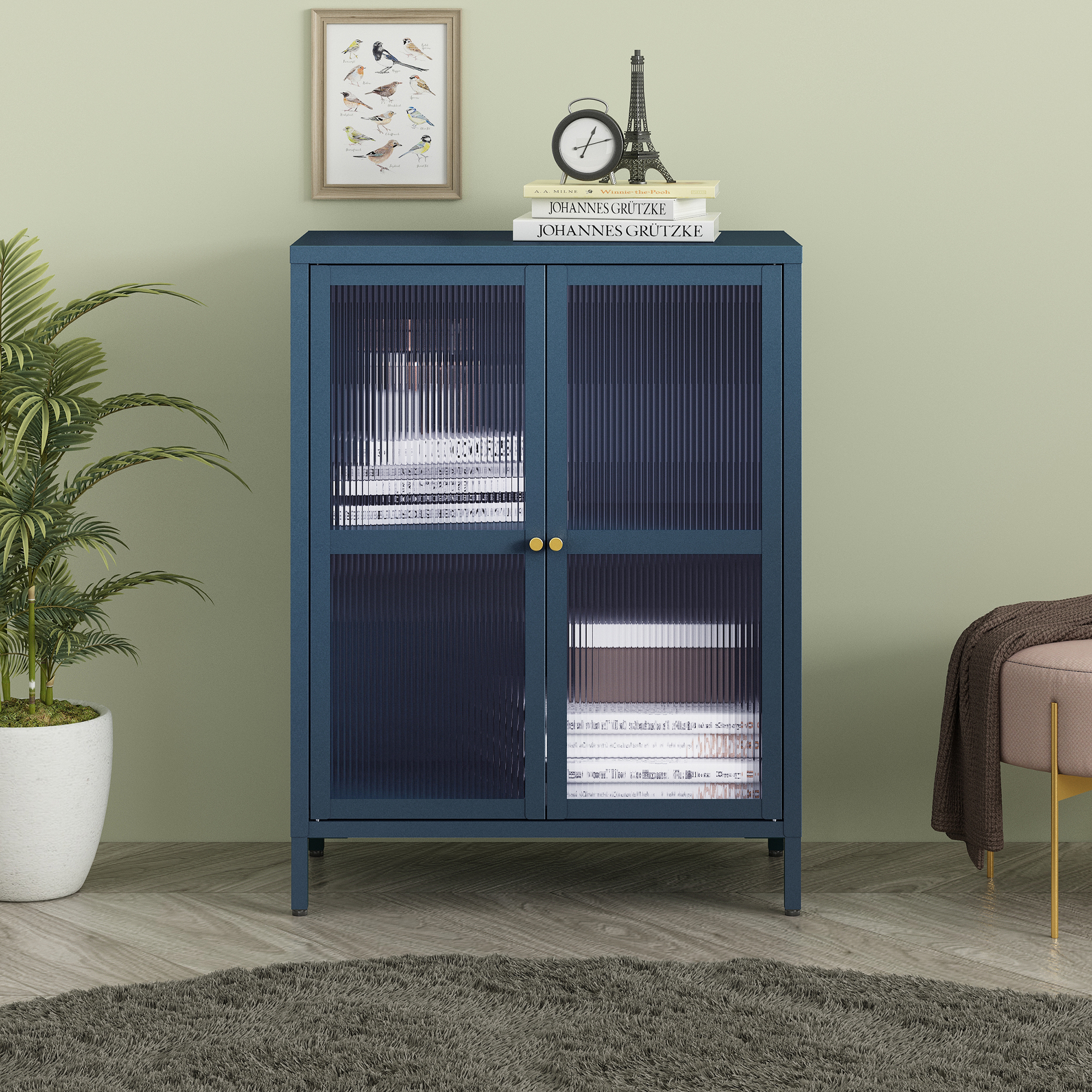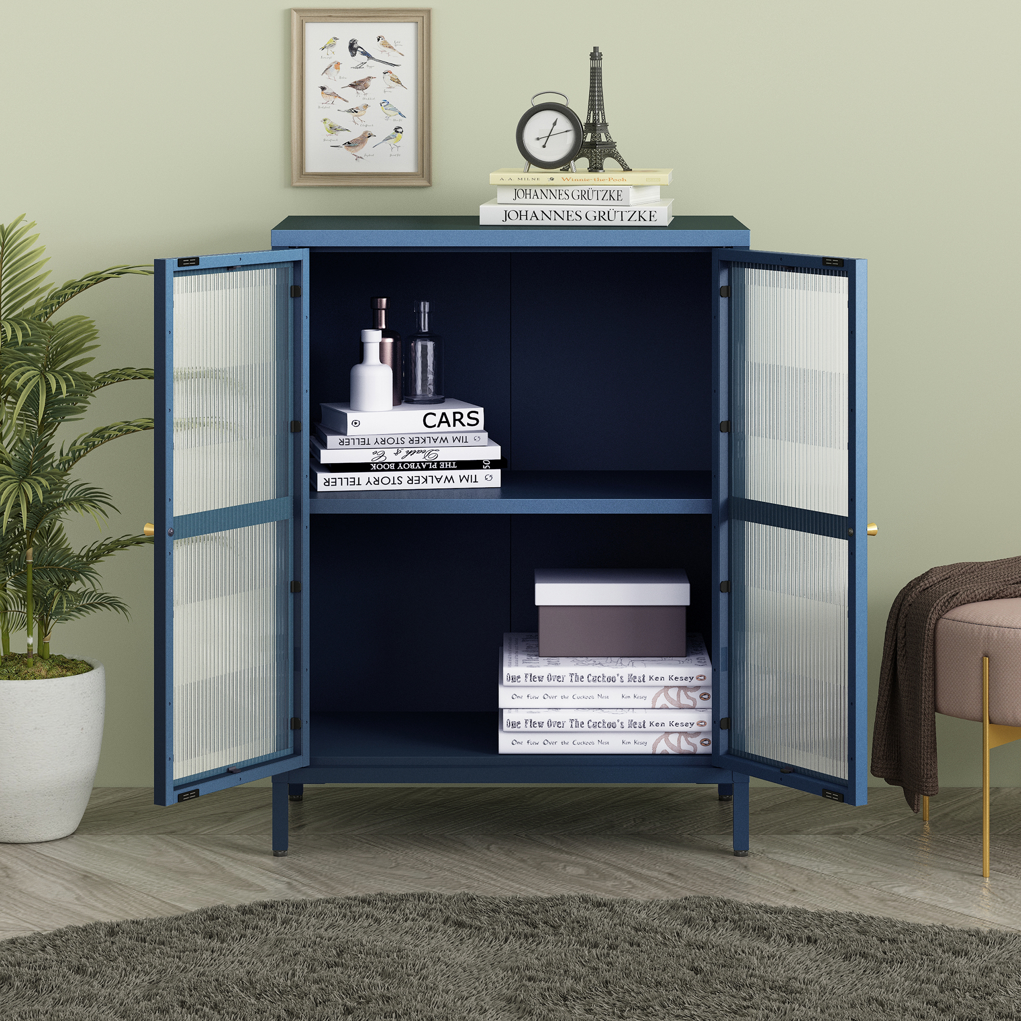 Der Wohnzimmerschrank ist ein stilvolles und praktisches Möbelstück, das Ihnen die perfekte Ergänzung für Ihren Wohnraum bietet. Er verfügt über zwei Türen und zwei Ablagefächer im Schrankinnern.