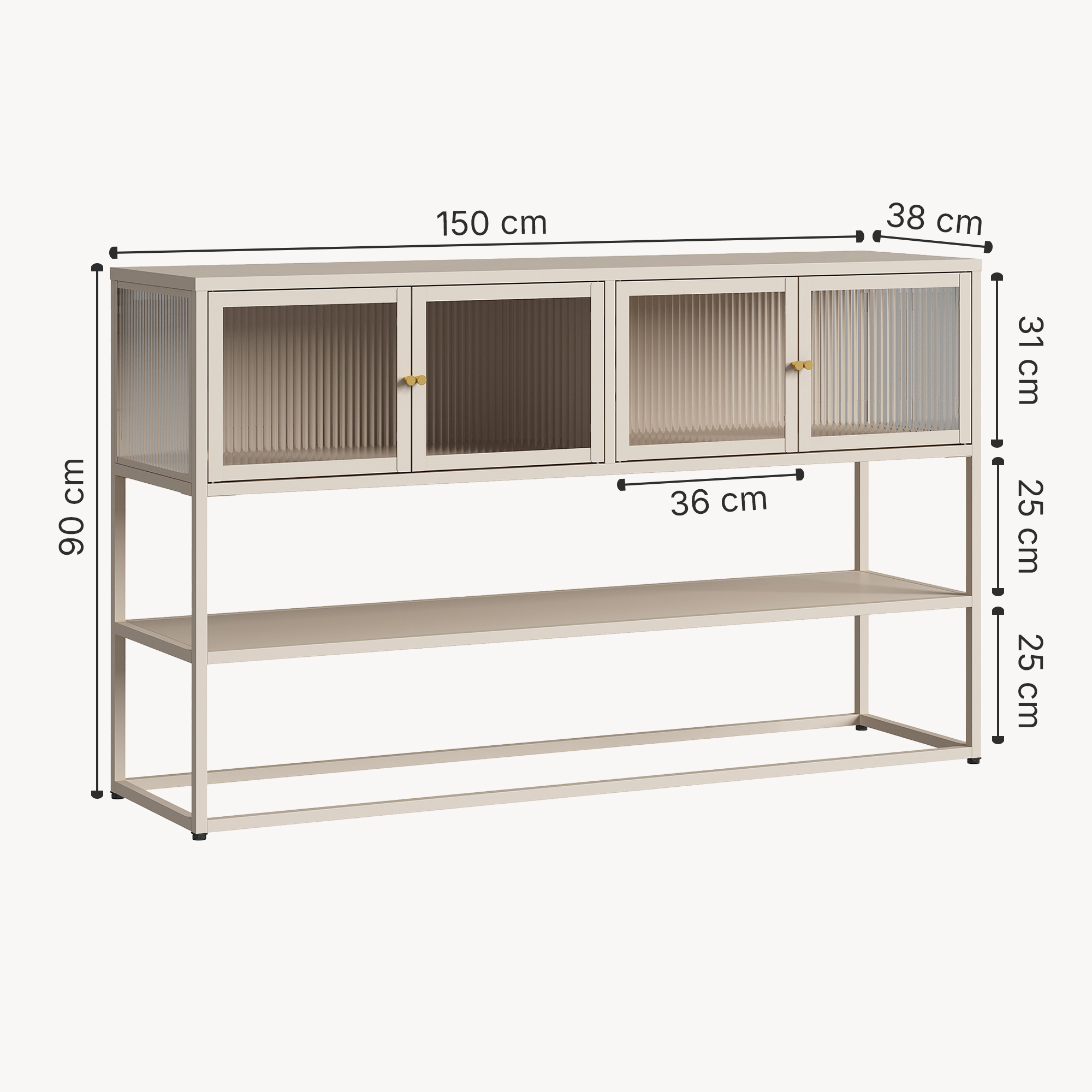 - Abstand zwischen unterer Ablage und Korpus: 25 cm