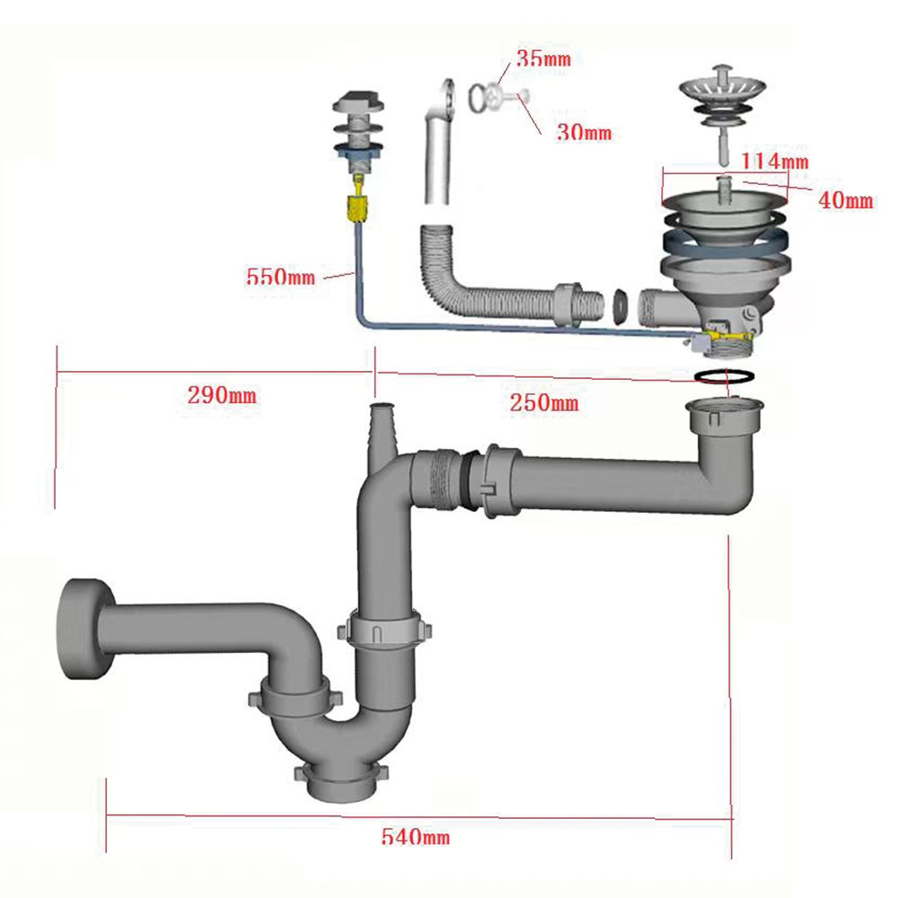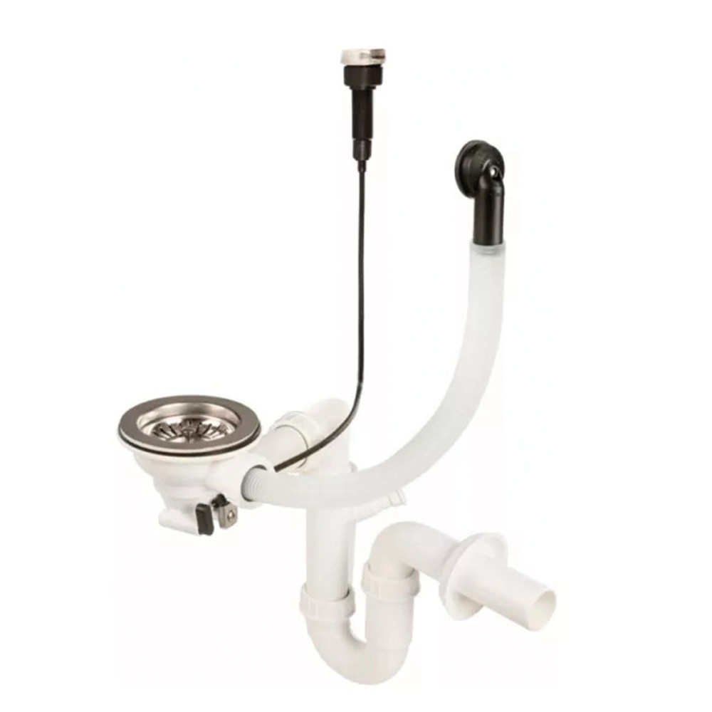 Utilizare: se montează la chiuvete cu 1 bazin (ideal pentru chiuvete din granit). Pentru golire, apasă butonul de comandă; apa se evacuează rapid prin sifon, fără a fi nevoie să scoți manual dopul.