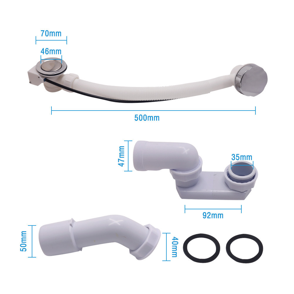 Utilizare: se monteaza la scurgerea cazii/instalatiei de baie, apoi se actioneaza dopul prin apasare pentru a bloca sau elibera apa. Recomandat pentru proiecte de inlocuire sau instalari noi, in bai rezidentiale.
