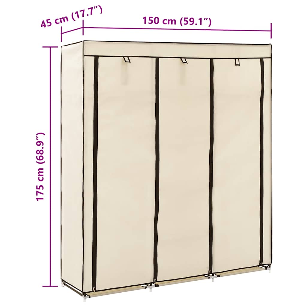 Șifonier cu compartimente și bare, crem, 150x45x175 cm, textil GartenMobel Dekor