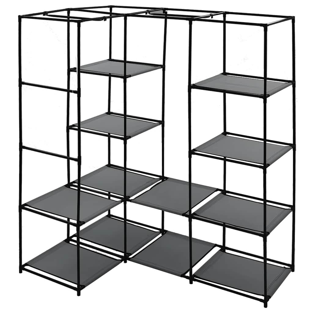 Dulapul pentru haine este prevăzut cu un cadru robust din fier, fiind extrem de durabil. Comparativ cu un dulap din material textil obișnuit, structura acestui șifonier de colț din material textil este și mai stabilă. Acest șifonier care economisește spațiu optimizează utilizarea unui colț de cameră și, prin urmare, oferă spații de depozitare mari și opțiuni de agățare, pentru a vă păstra gențile, încălțămintea și obiectele mici organizate și la îndemână. Husa din material textil cu fermoare vă va proteja hainele de murdărie și praf.