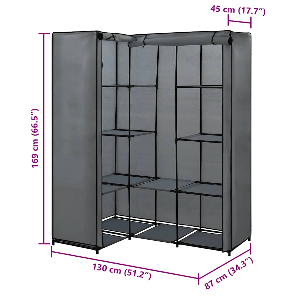 Șifonier de colț, gri, 130 x 87 x 169 cm GartenMobel Dekor
