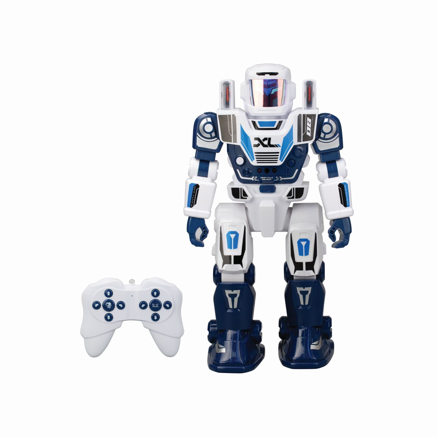 Un robot gigantic programabil Silverit, inalt de 40 cm! 3 moduri de a interactiona cu robotul pre-programare (pana la 48 de comenzi), telecomanda directa cu functii complete sau control al miscarii prin simpla gesticulare a mainii! Merge ca un om, aluneca ca un schior si danseaza ca o star pop, cu efecte sonore robotice cool si expresii faciale diferite cu lumina LED! Functioneaza cu 4 baterii AA pentru robot si 2 AAA pentru telecomanda, neincluse.