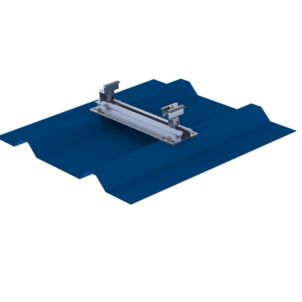 Se poziționează pe tabla cutată, apoi se fixează cu șuruburile autoforante incluse. După montarea șinei, se pot utiliza cleme compatibile pentru prinderea panourilor în configurația dorită.