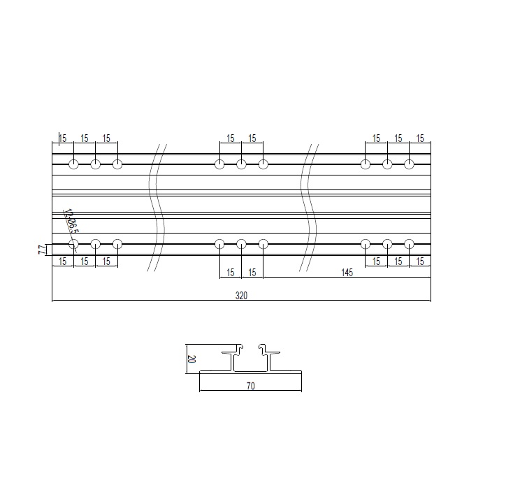 - Dimensiuni: 320 mm x 70 mm